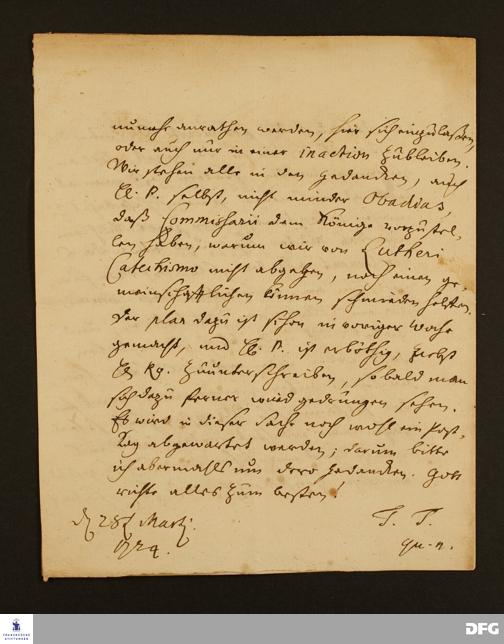 Brief von Johann Gustav Reinbeck an August Hermann Francke.