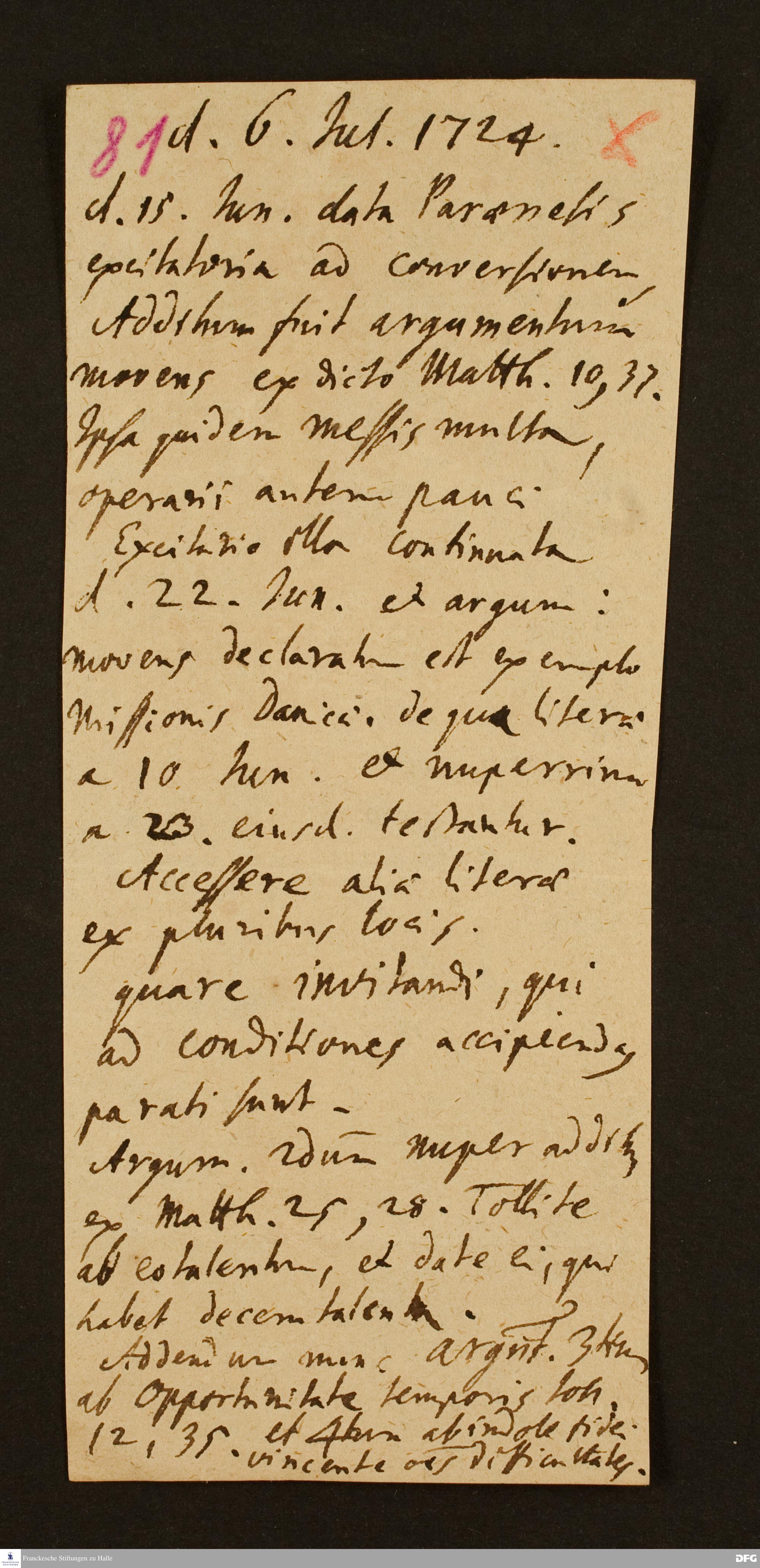 Disposition der paränetischen Vorlesung von August Hermann Francke am 06.07.1724.
