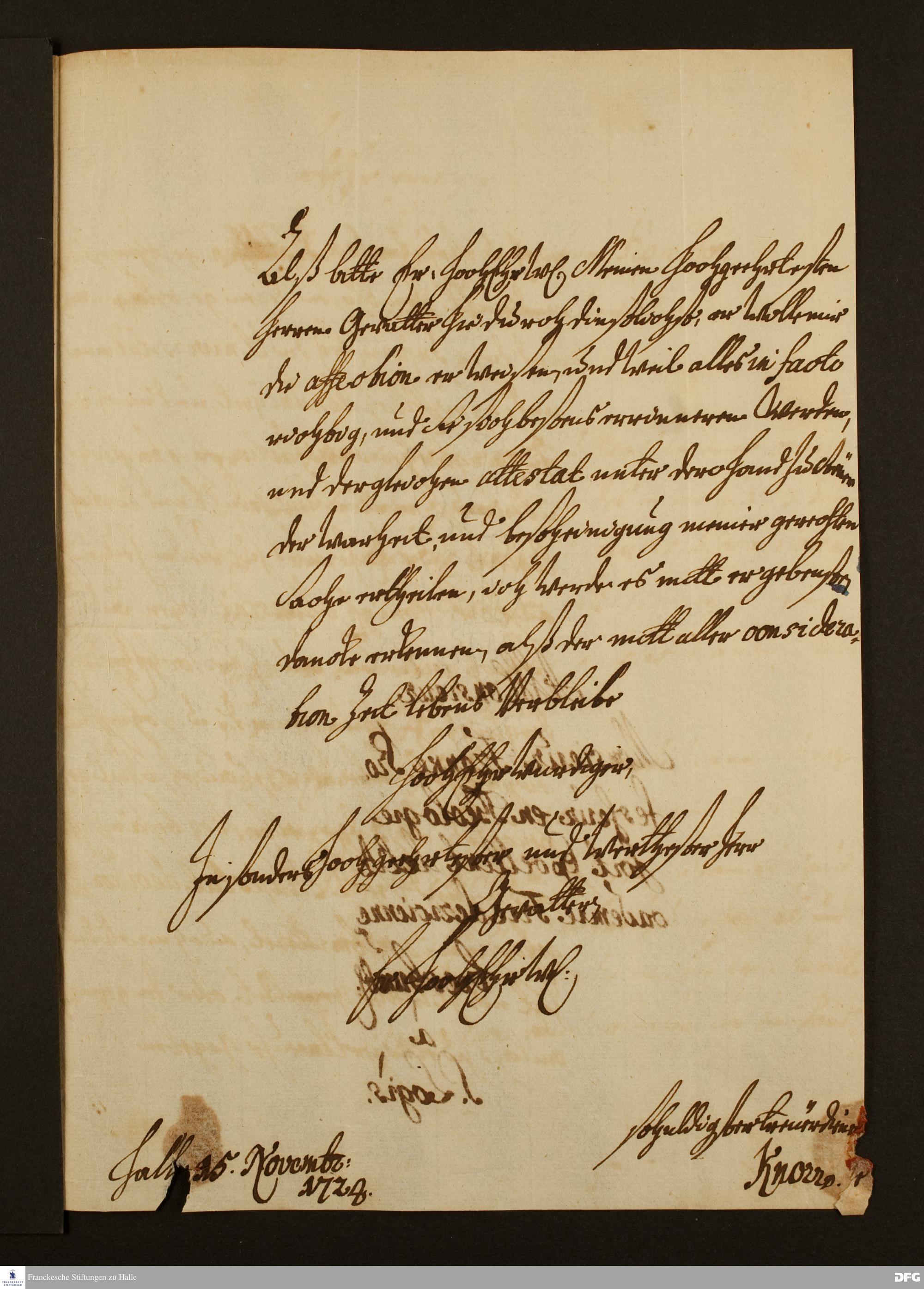 Brief von Ernst Heinrich Knorre an August Hermann Francke.