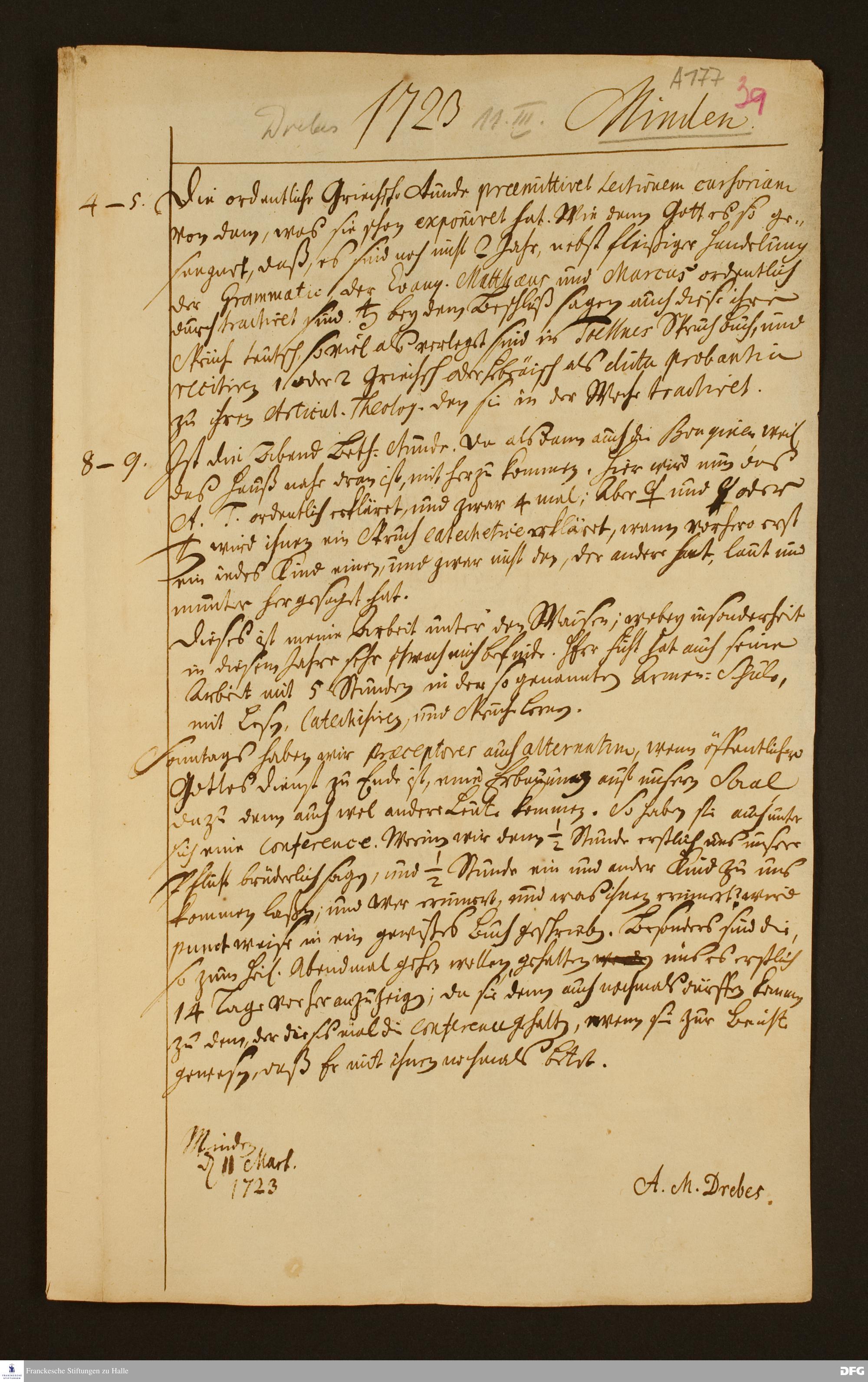 Bericht von Adolph Matthias Drebes an August Hermann Francke.