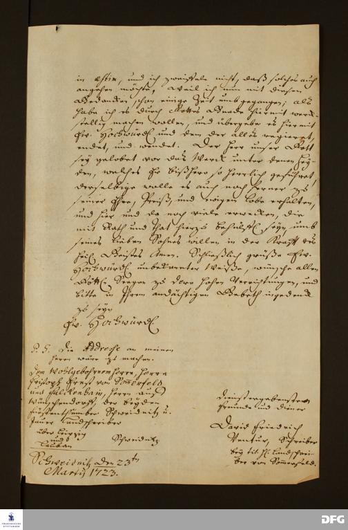 Brief von David Friedrich Ventur an August Hermann Francke.