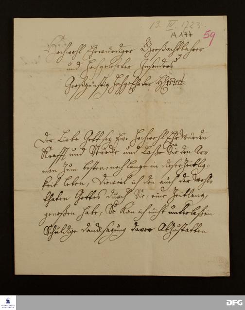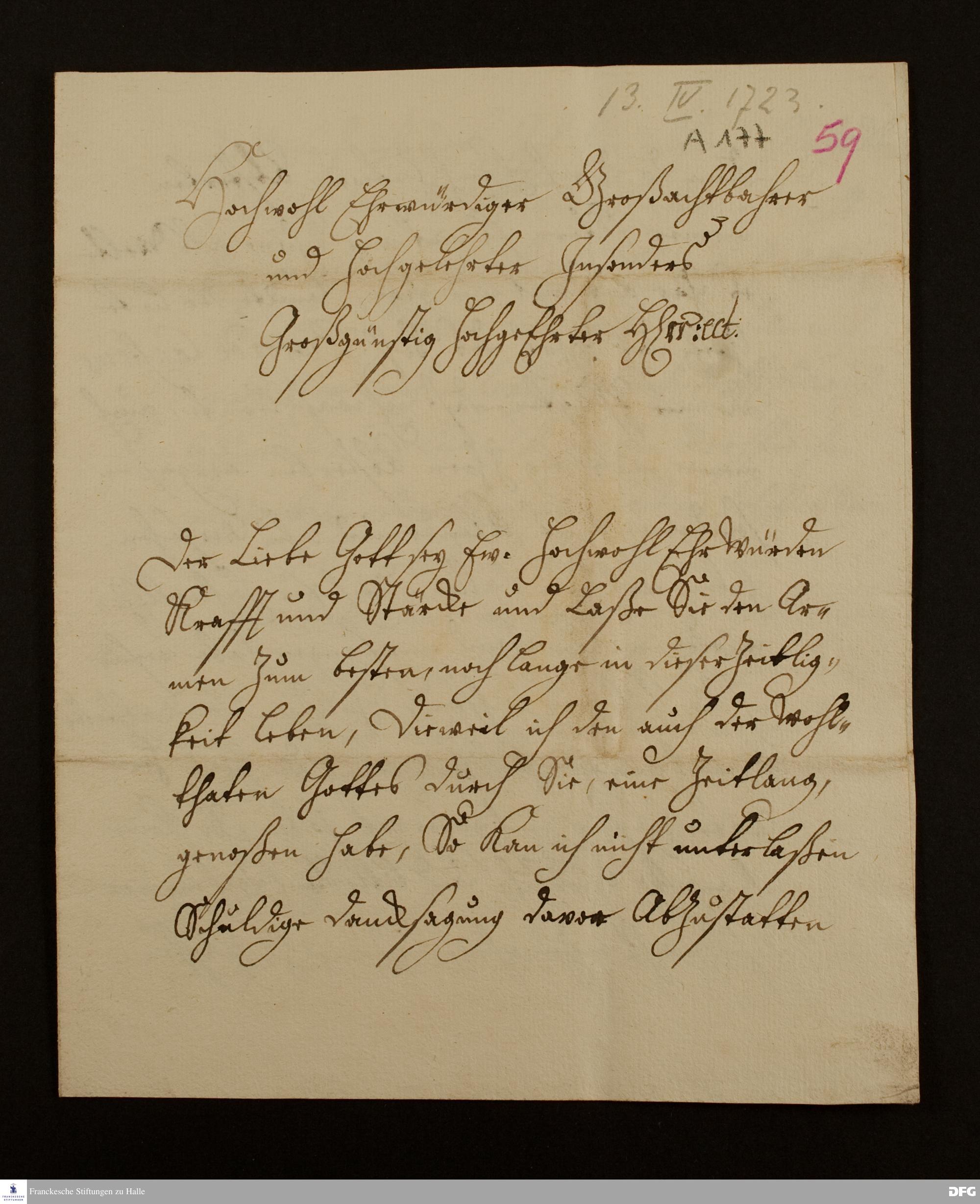 Brief von Johann Heinrich Plötzke an August Hermann Francke.