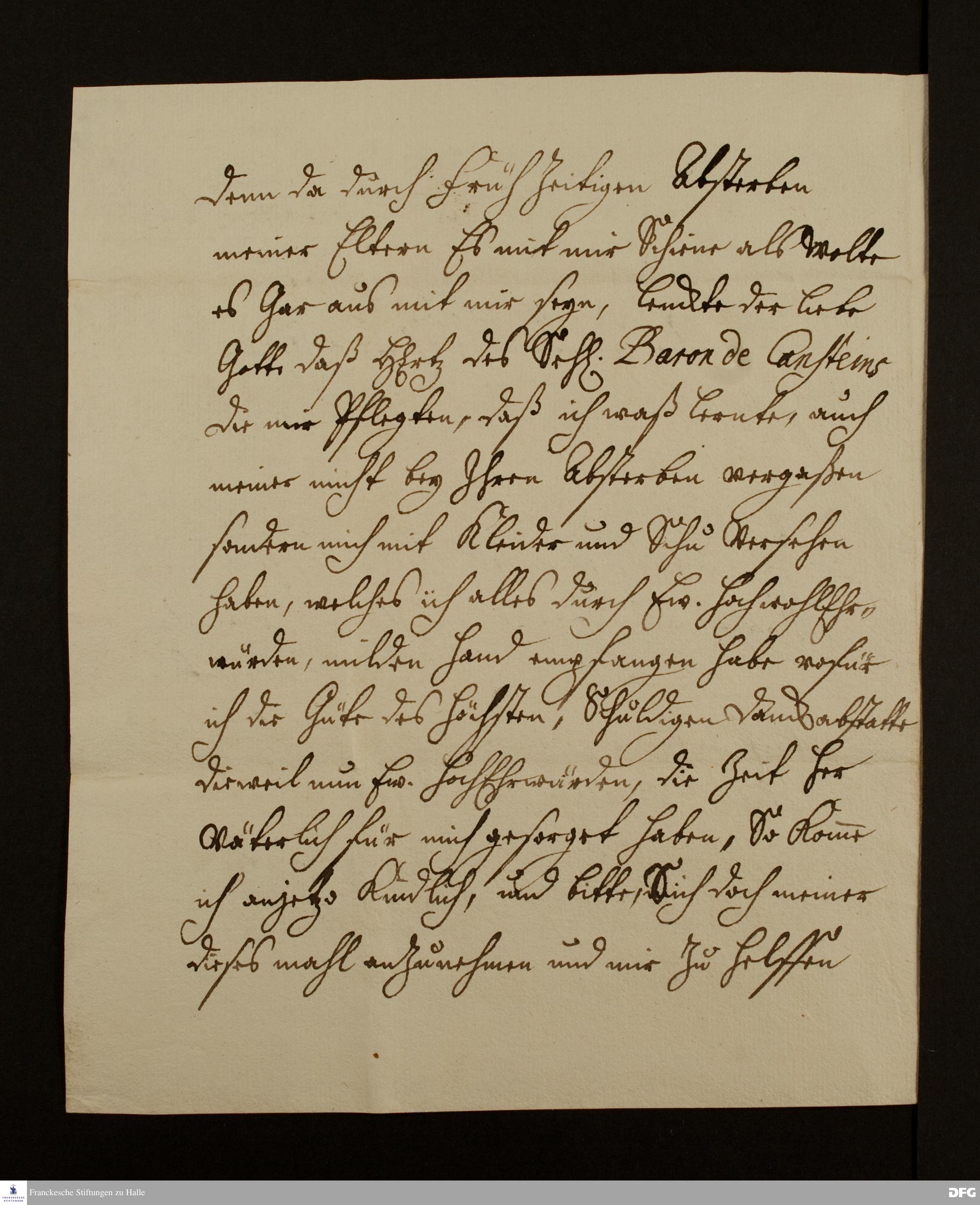 Brief von Johann Heinrich Plötzke an August Hermann Francke.