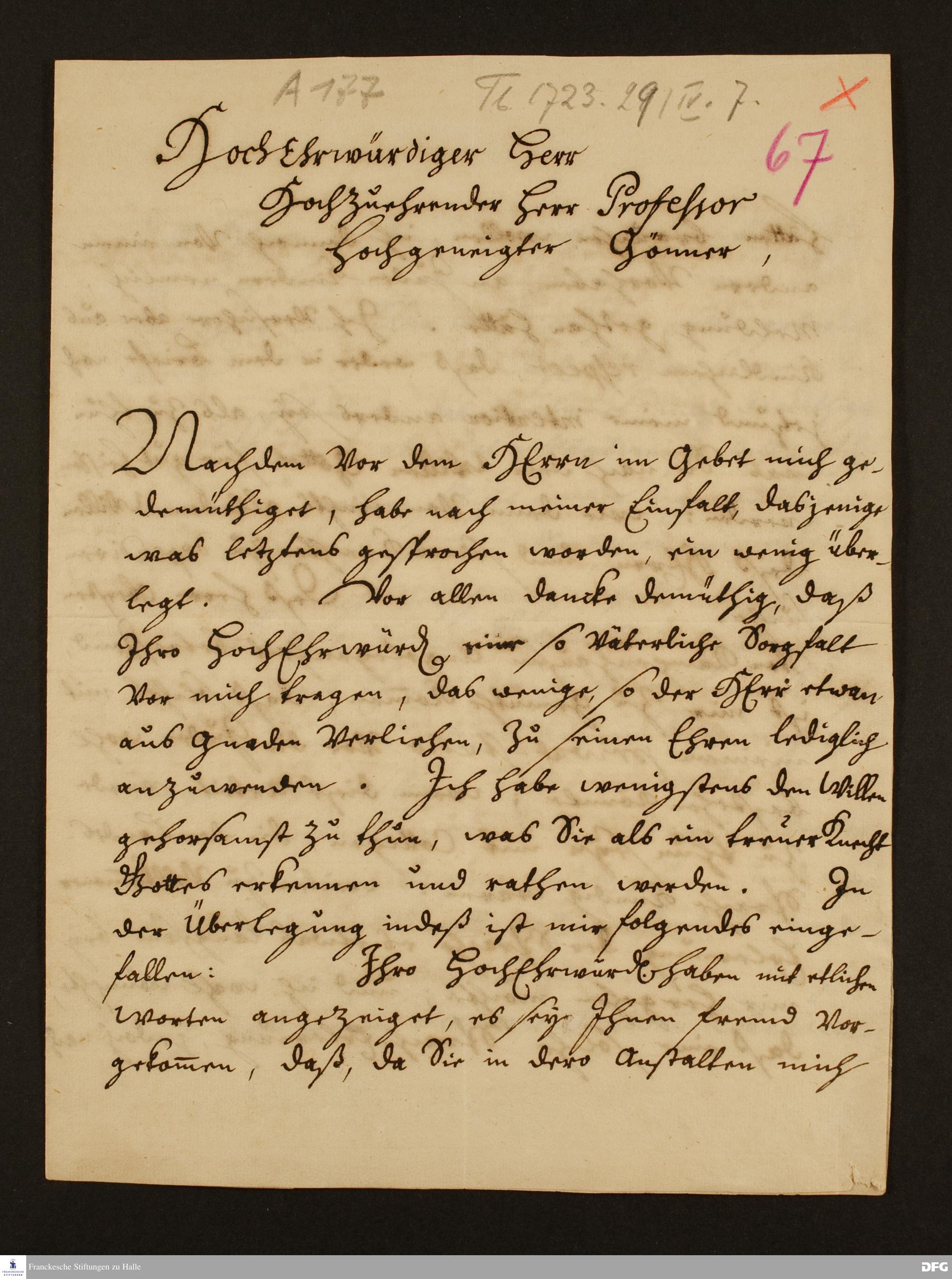 Brief von Johannes Loder an August Hermann Francke.