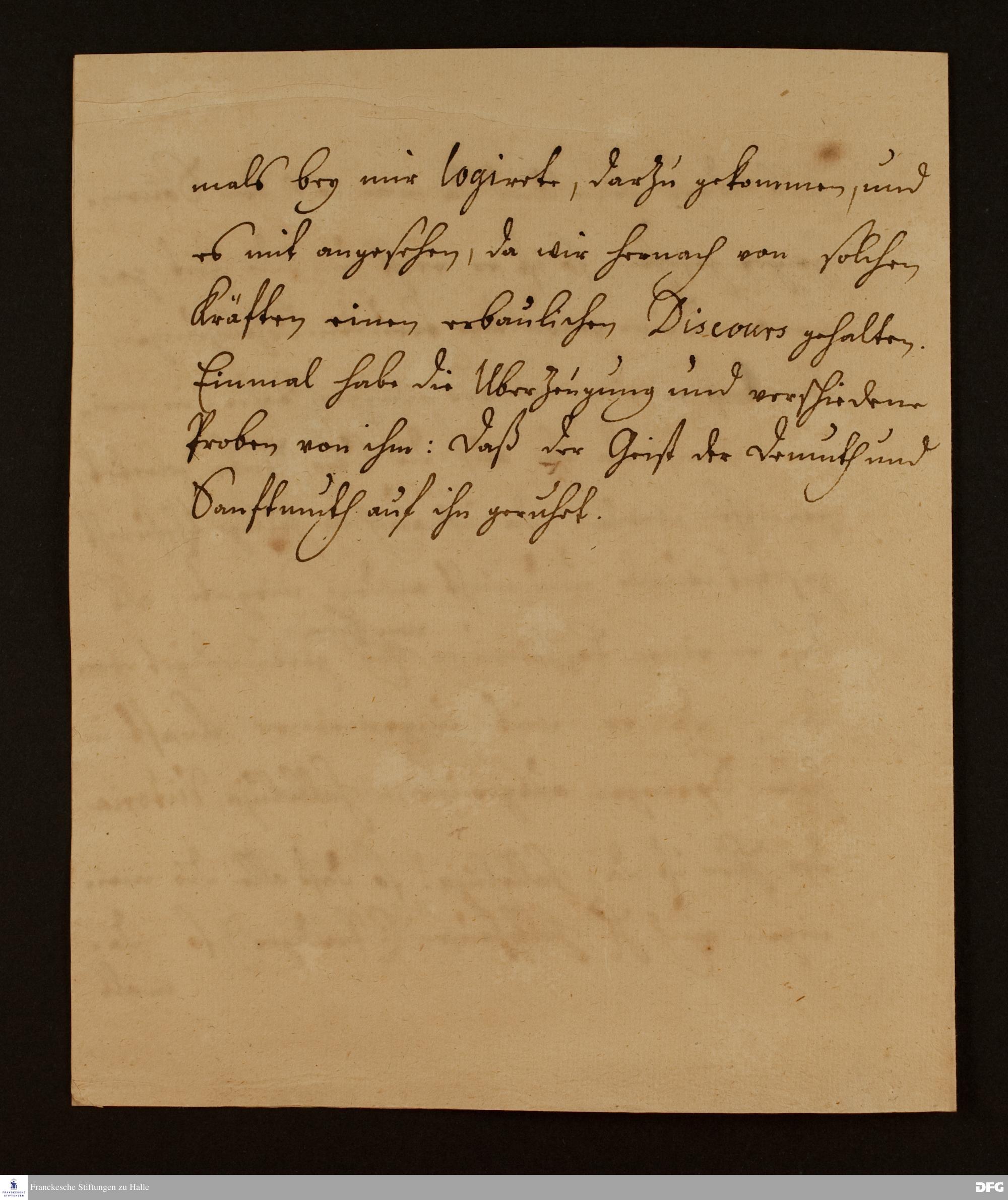 Auszug eines Briefs von Ludwig Christoph Schäfer an August Hermann Francke.