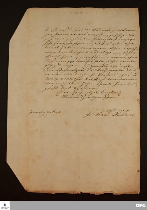 Brief von Johann Franz Buddeus an Johann Heinrich v. Griesheim.