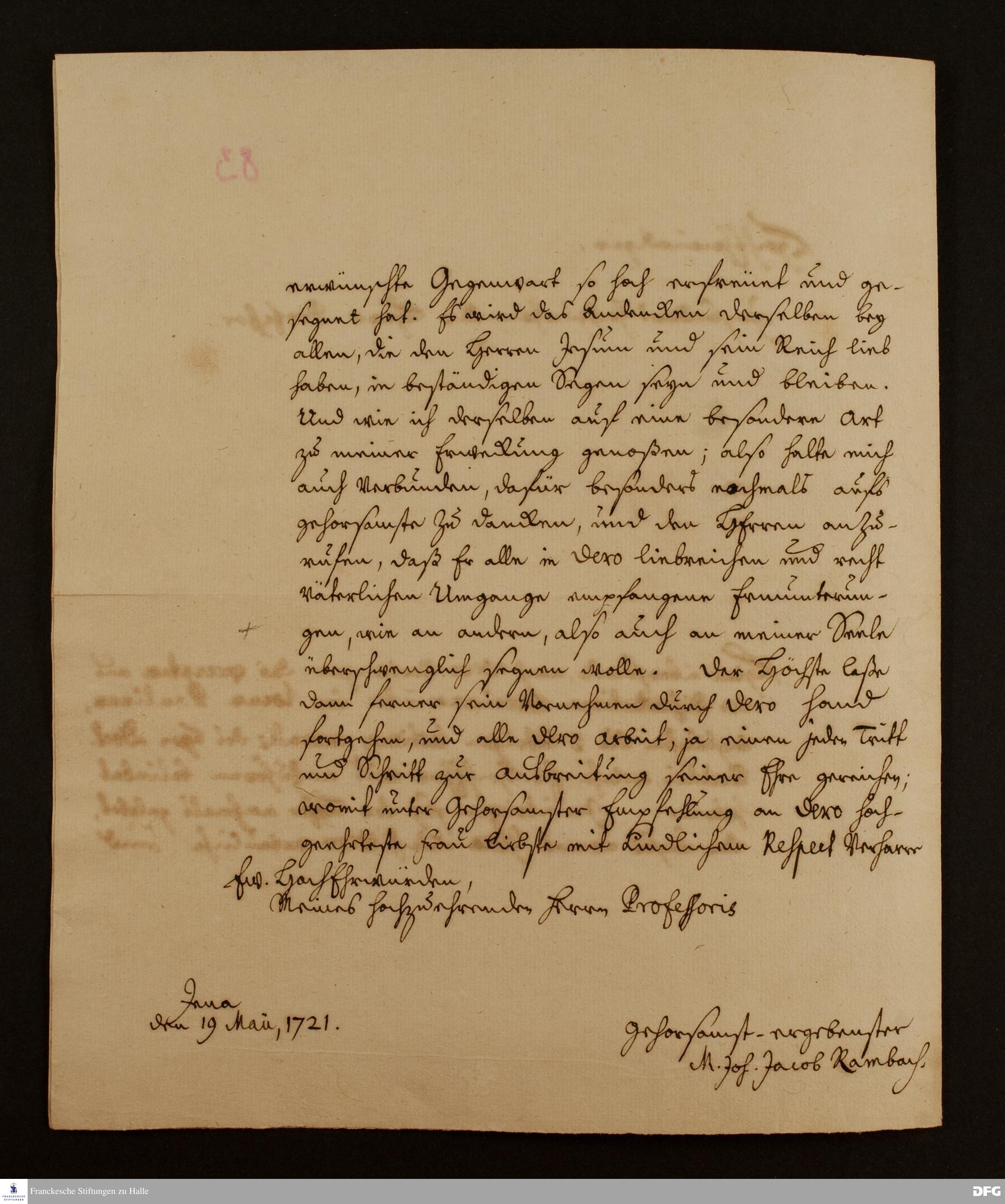 Brief von Johann Jakob Rambach an August Hermann Francke.