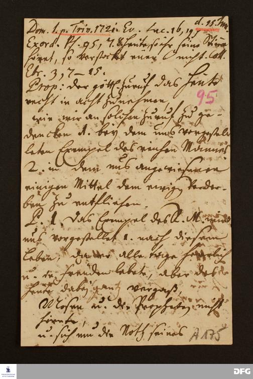 Disposition der Predigt von August Hermann Francke über Lk 16,19ff. am 15.06.1721.