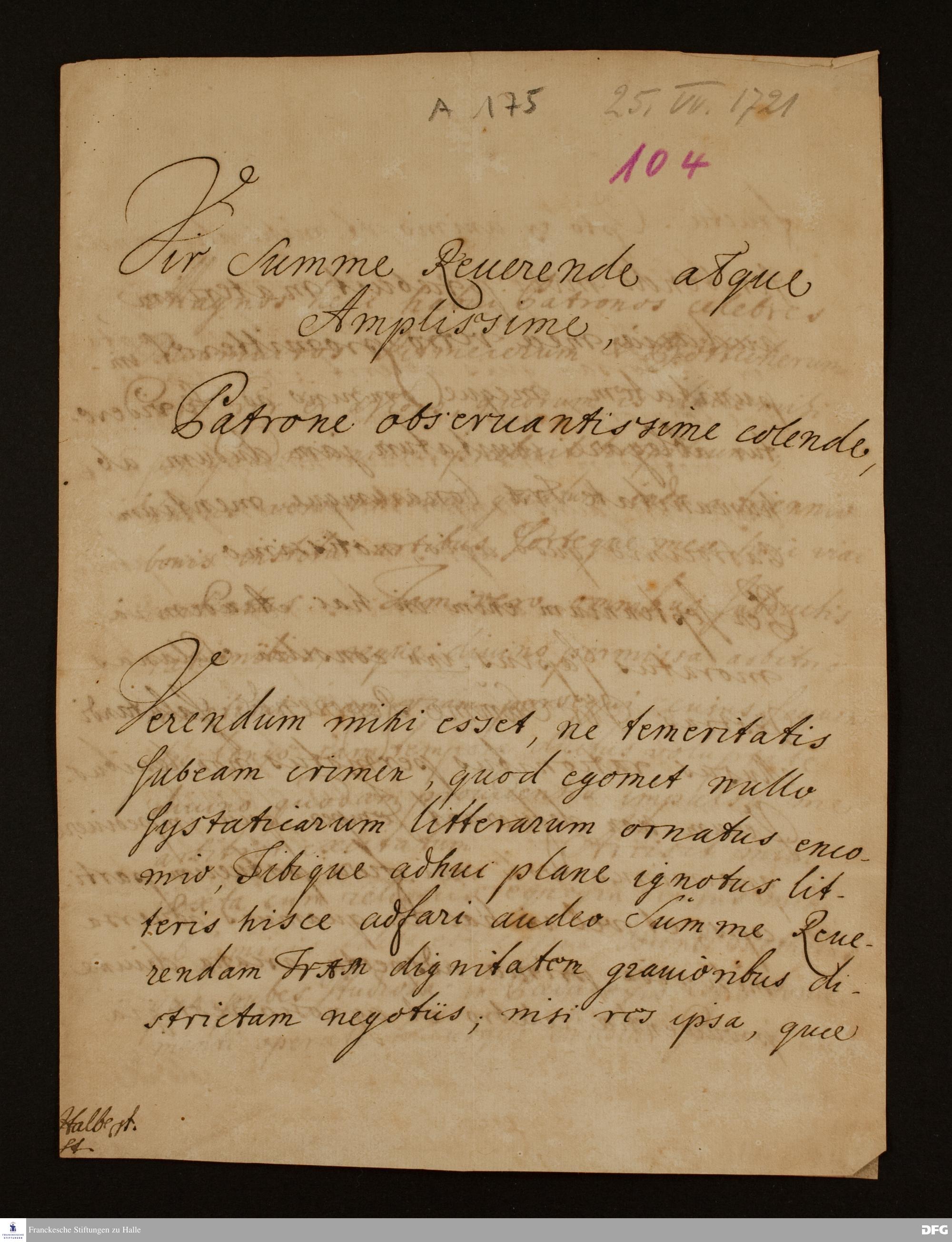Brief von Joachim Ernst Stein an August Hermann Francke.