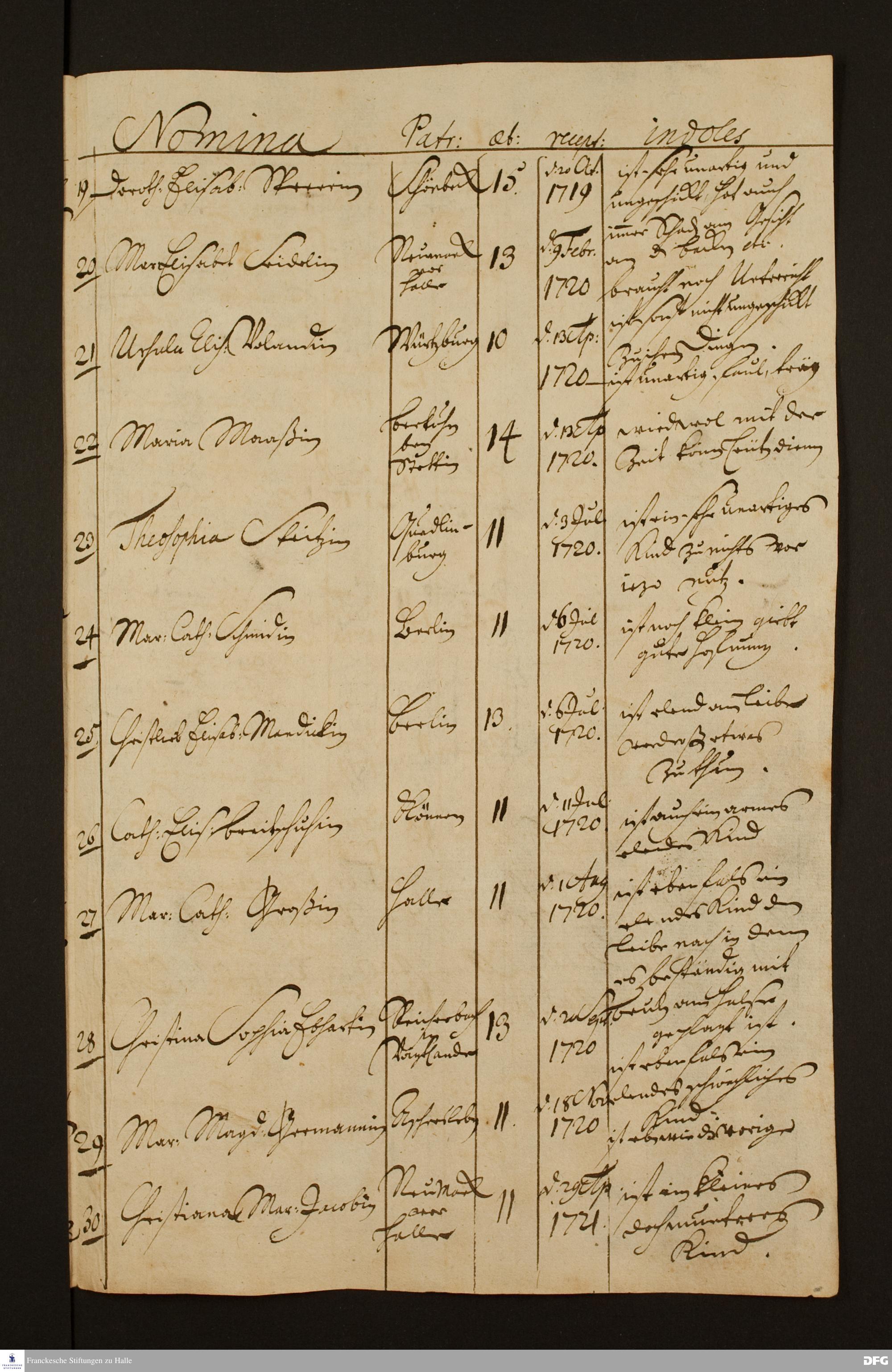 Namensliste der Waisenmädchen.