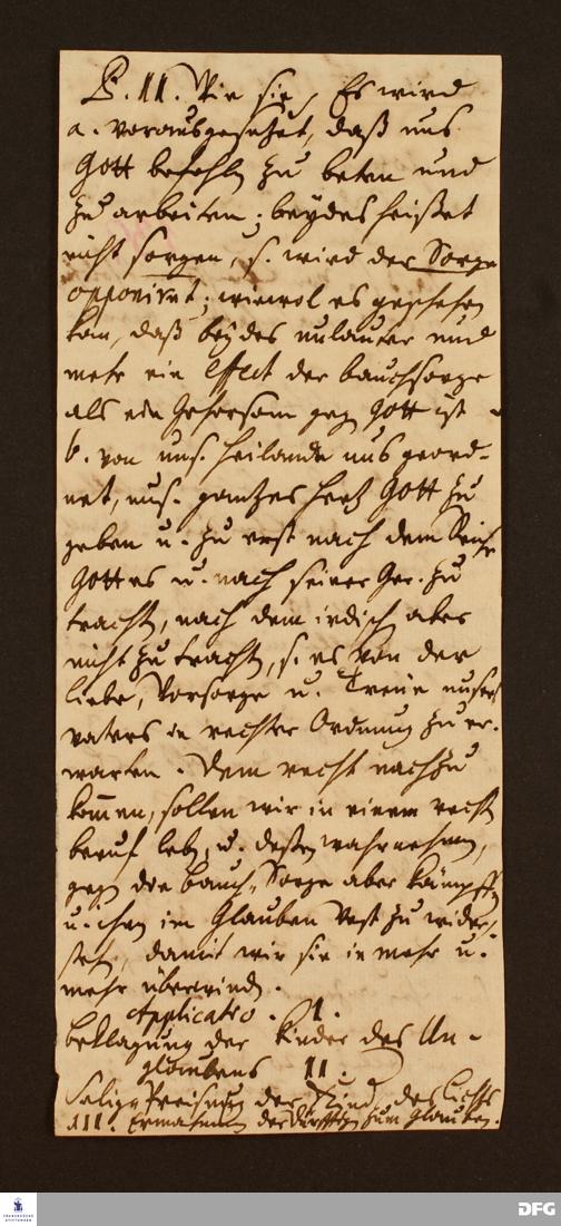 Disposition der Predigt von August Hermann Francke über Mt 6,24f. am 21.09.1721.