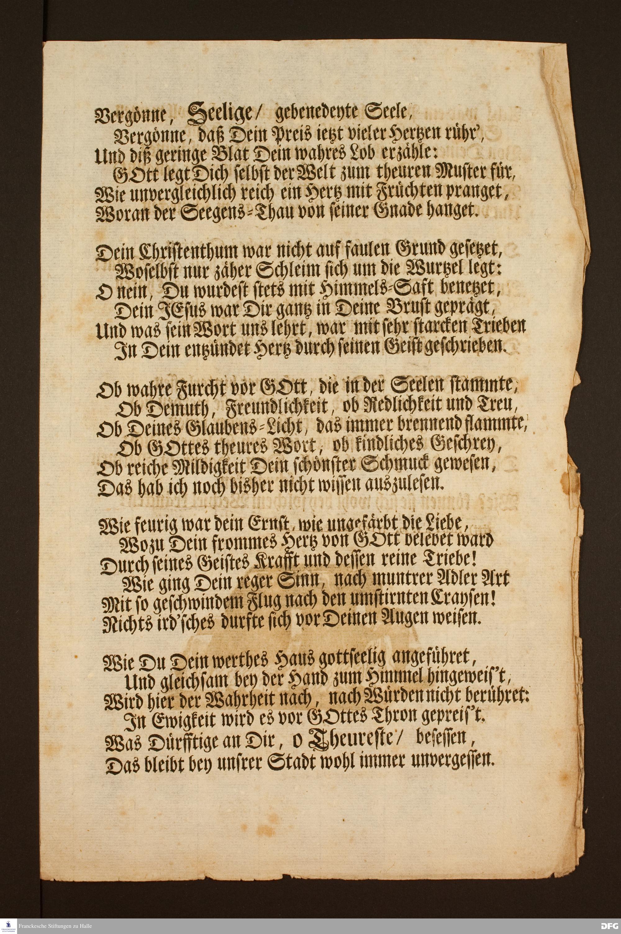 Epicedium von August Hermann Francke anlässlich des Todes von Maria Elisabeth Bieck.
