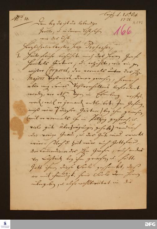 Brief von Heinrich Julius Elers an August Hermann Francke.