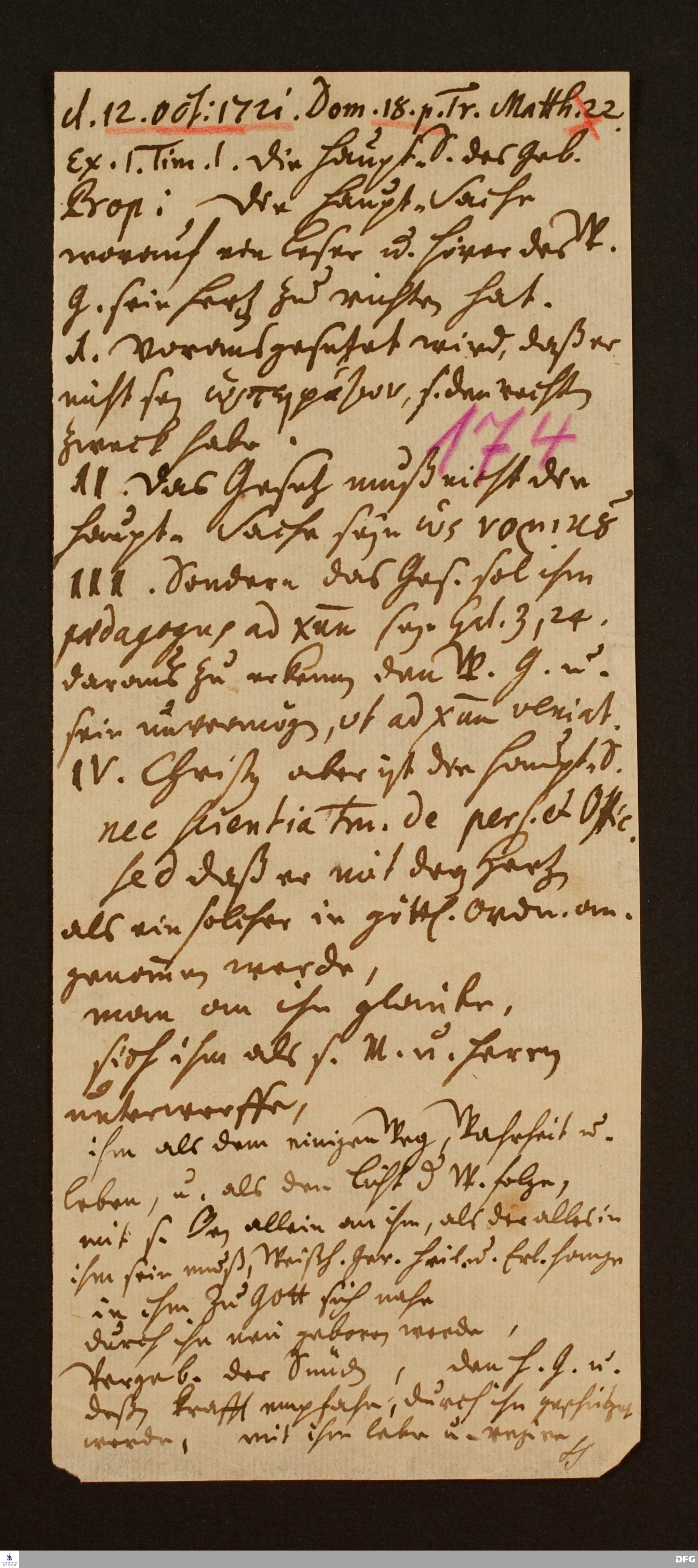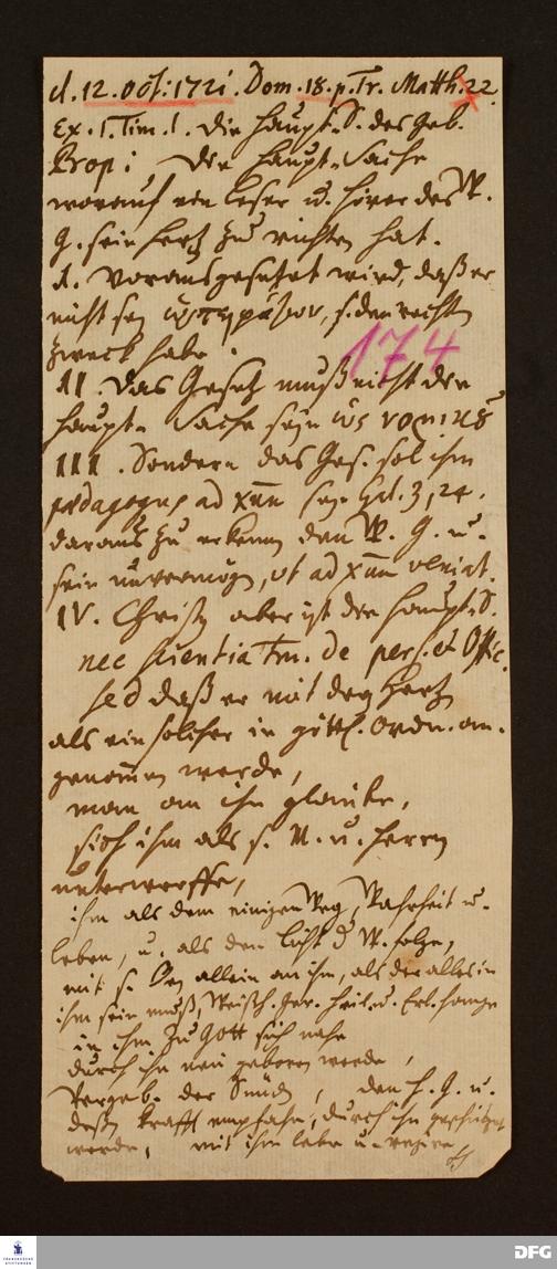 Disposition der Predigt von August Hermann Francke über Mt 22 am 12.10.1721.
