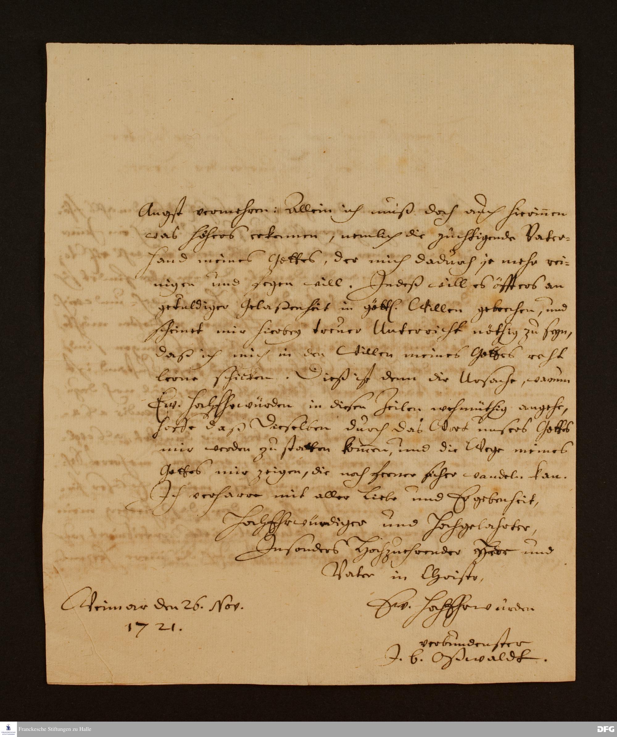 Brief von Johann Benjamin Osswald an August Hermann Francke.