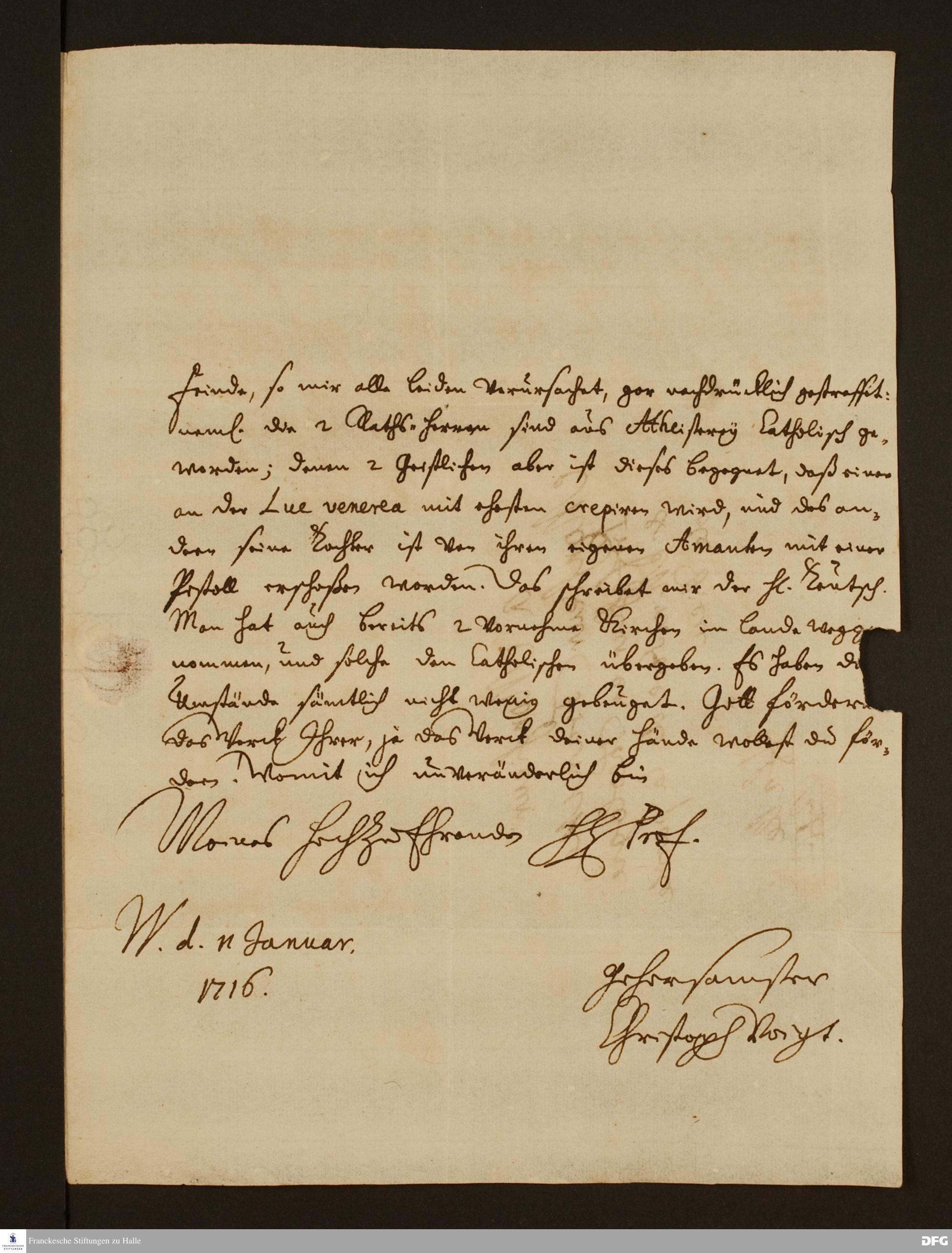Brief von Christoph Nikolaus Voigt an August Hermann Francke.