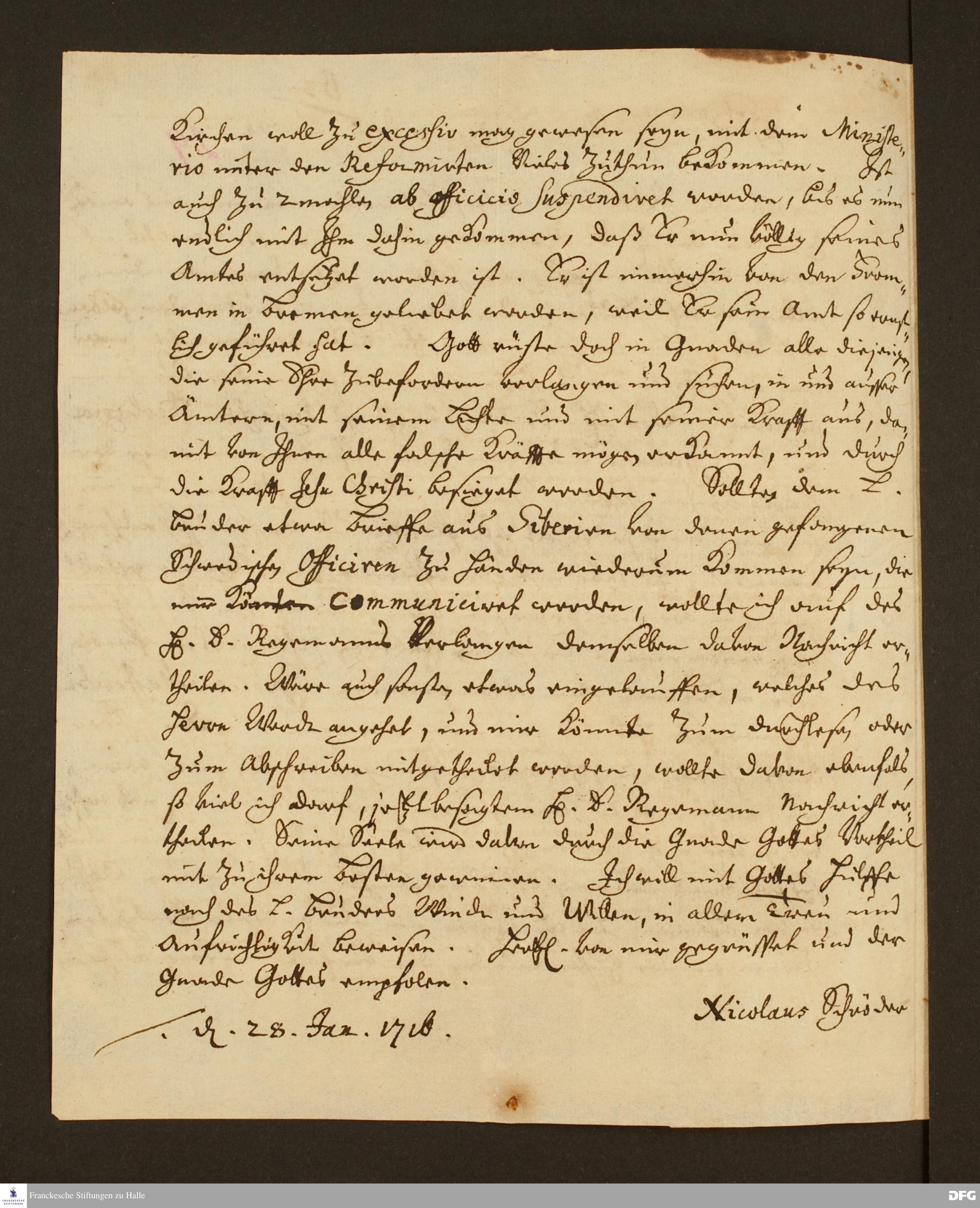 Brief von Nikolaus Schröder an August Hermann Francke.
