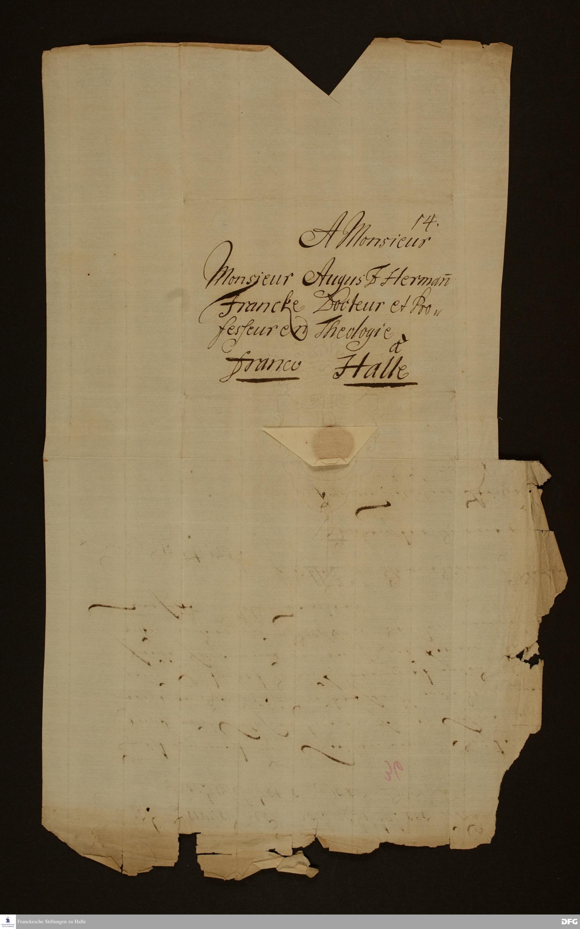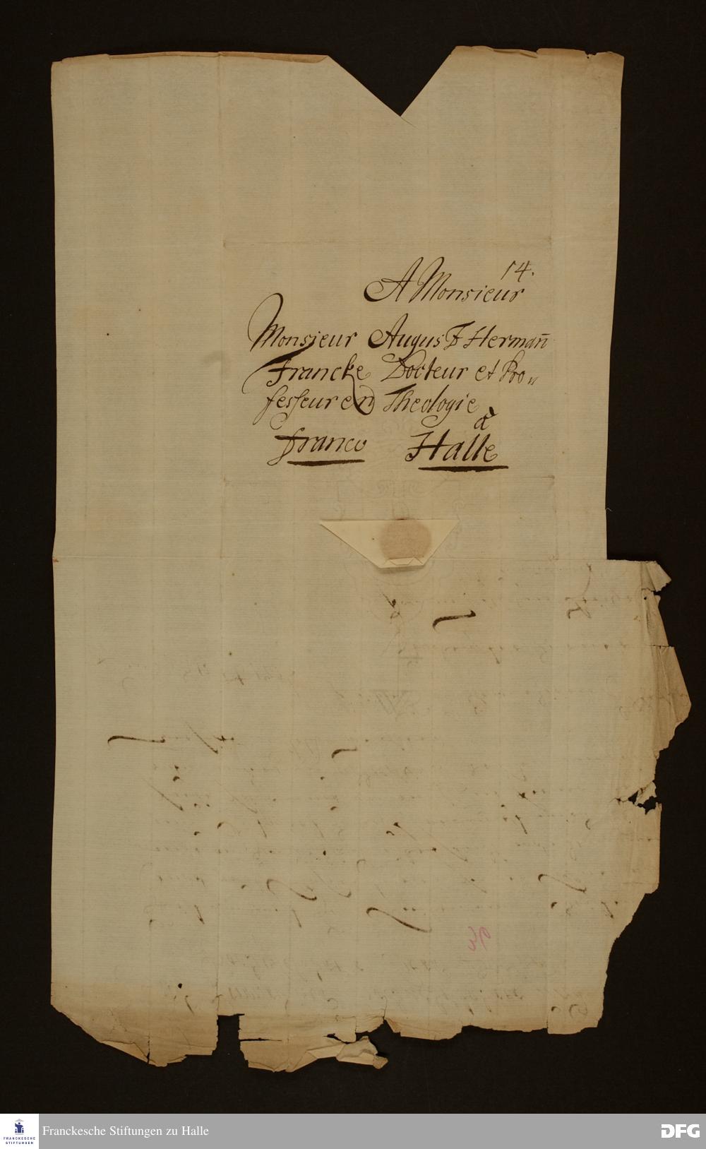 Brief von Johann Wilhelm Reichel an August Hermann Francke.