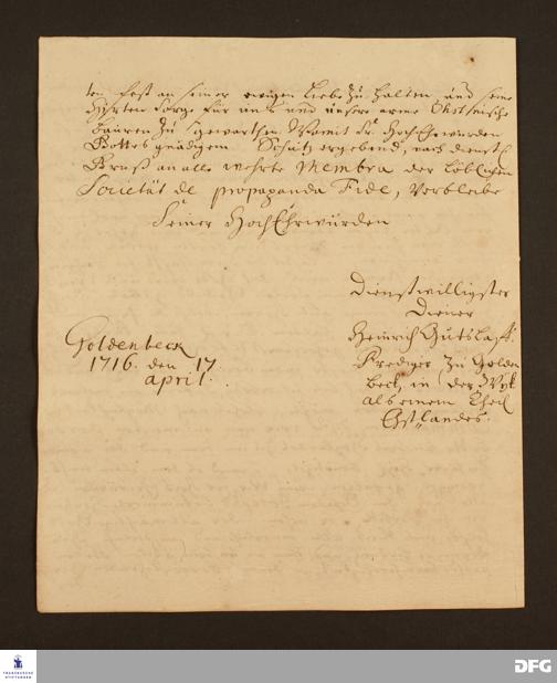 Bericht von Henrich Gutslaff an Heinrich Milde.