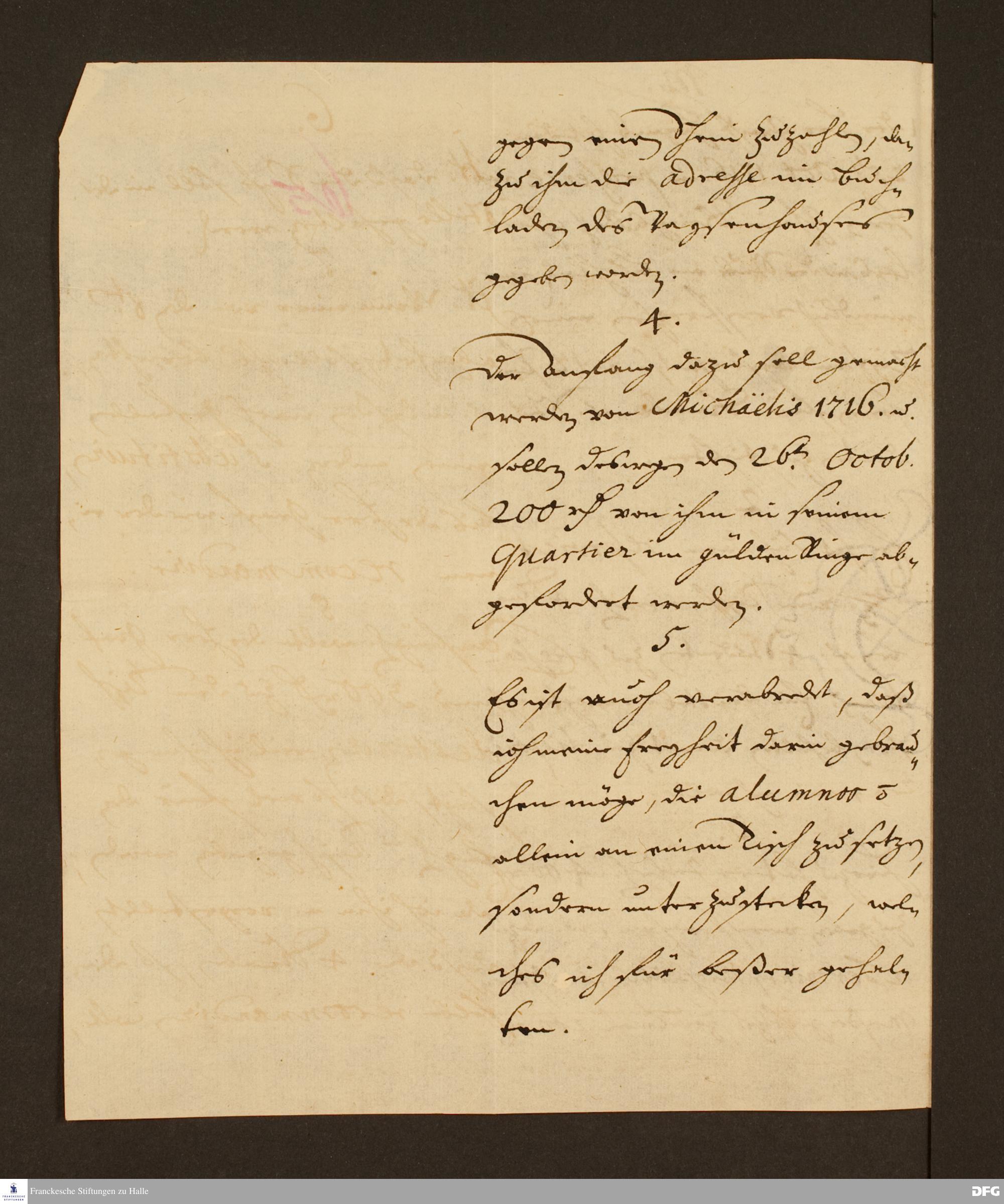 Teil der Vereinbarung zwischen August Hermann Francke und Ludwig Gebhard v. Hoym zur Stiftung eines Freitischs für 12 Personen.