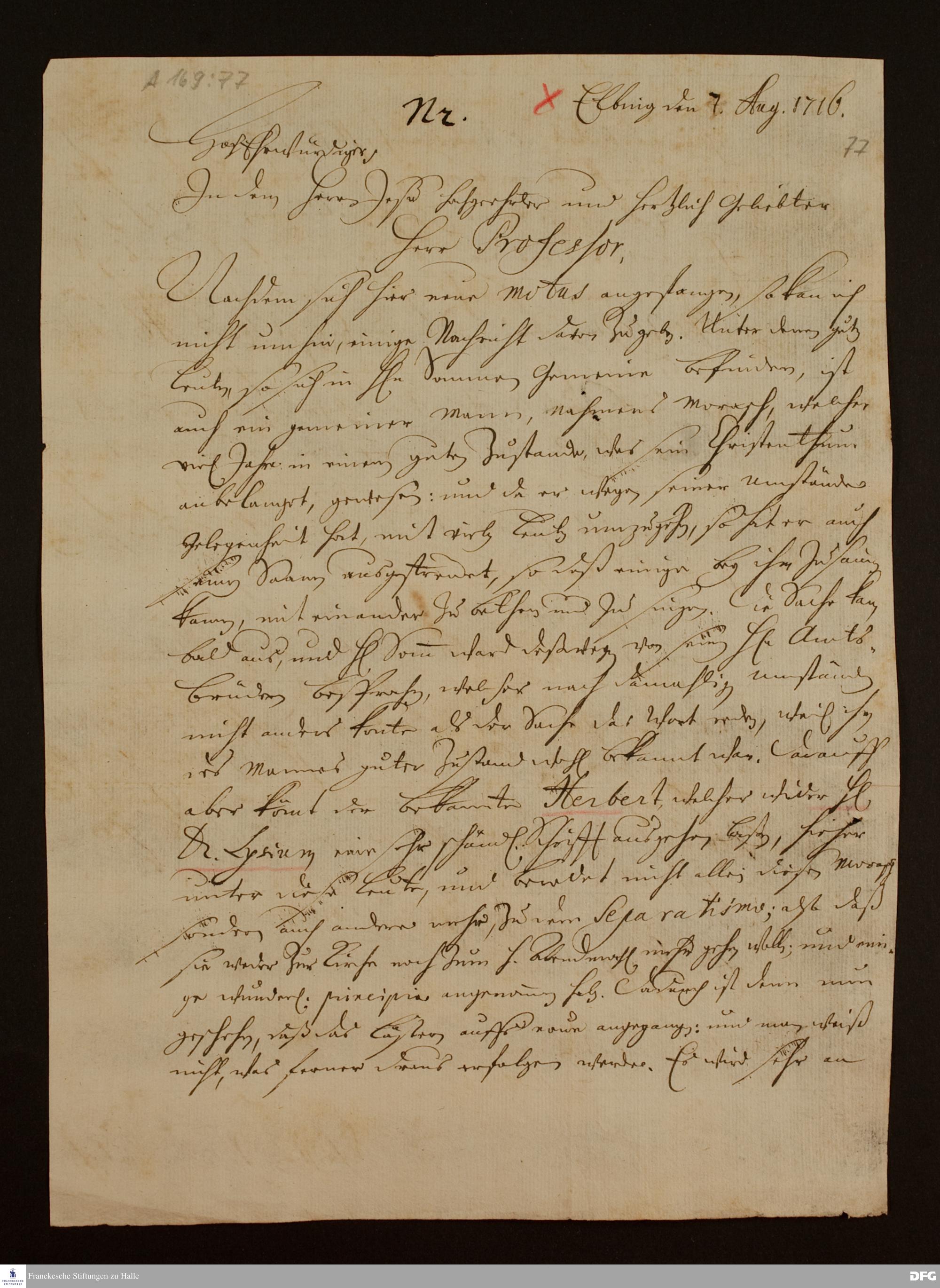 Brief von Christian Jacob Koitzsch an August Hermann Francke.