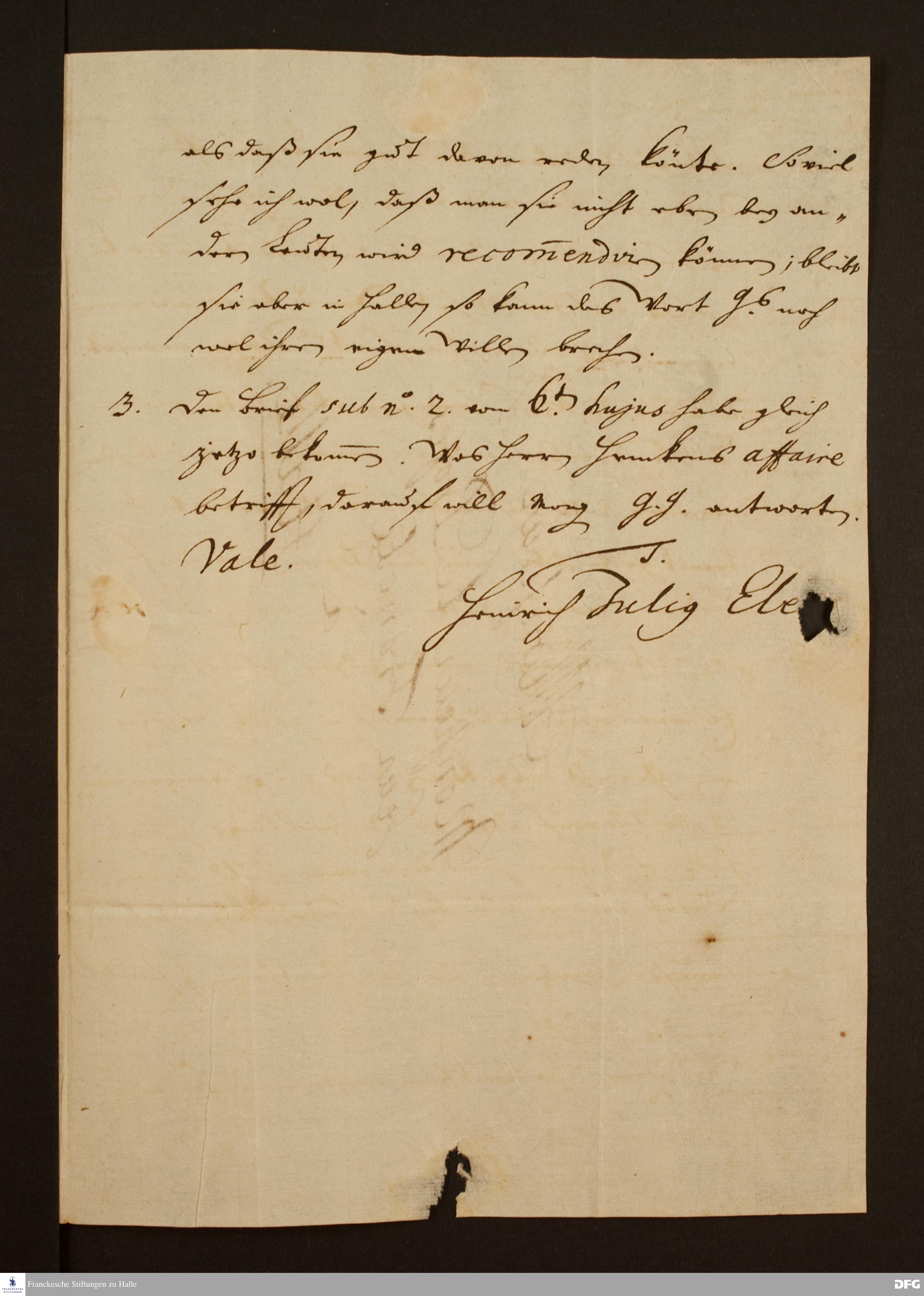 Brief von Heinrich Julius Elers an August Hermann Francke.