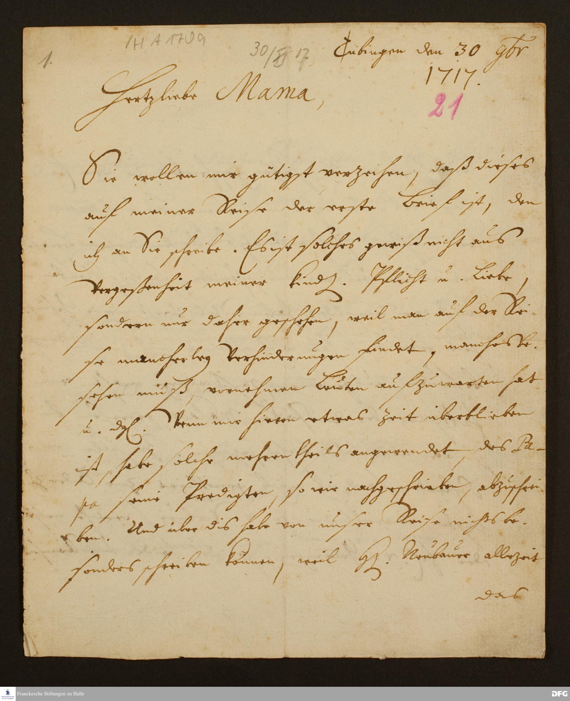 Tübingen 30.11.1717