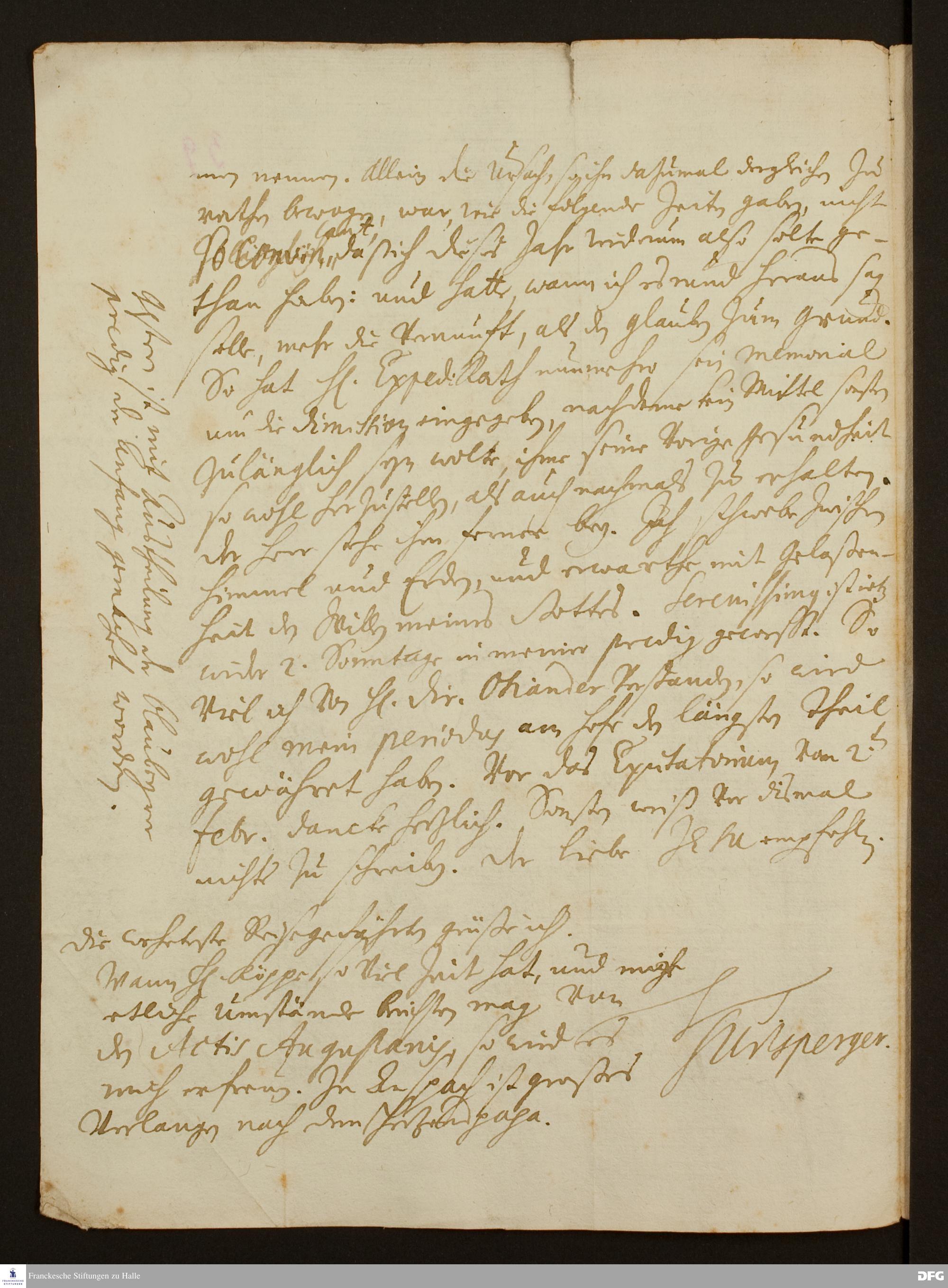 Brief von Samuel Urlsperger an August Hermann Francke.