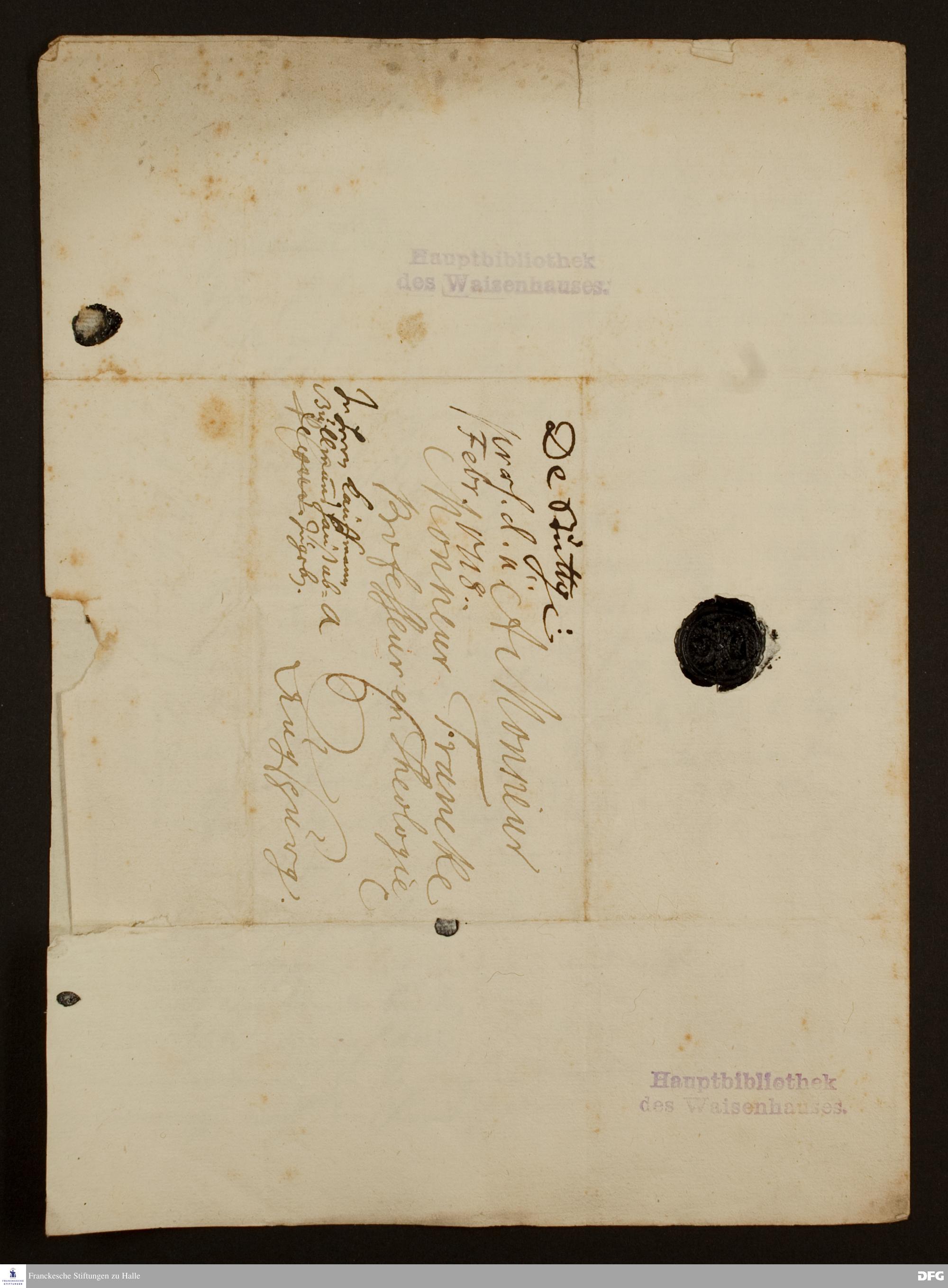 Brief von Samuel Urlsperger an August Hermann Francke.