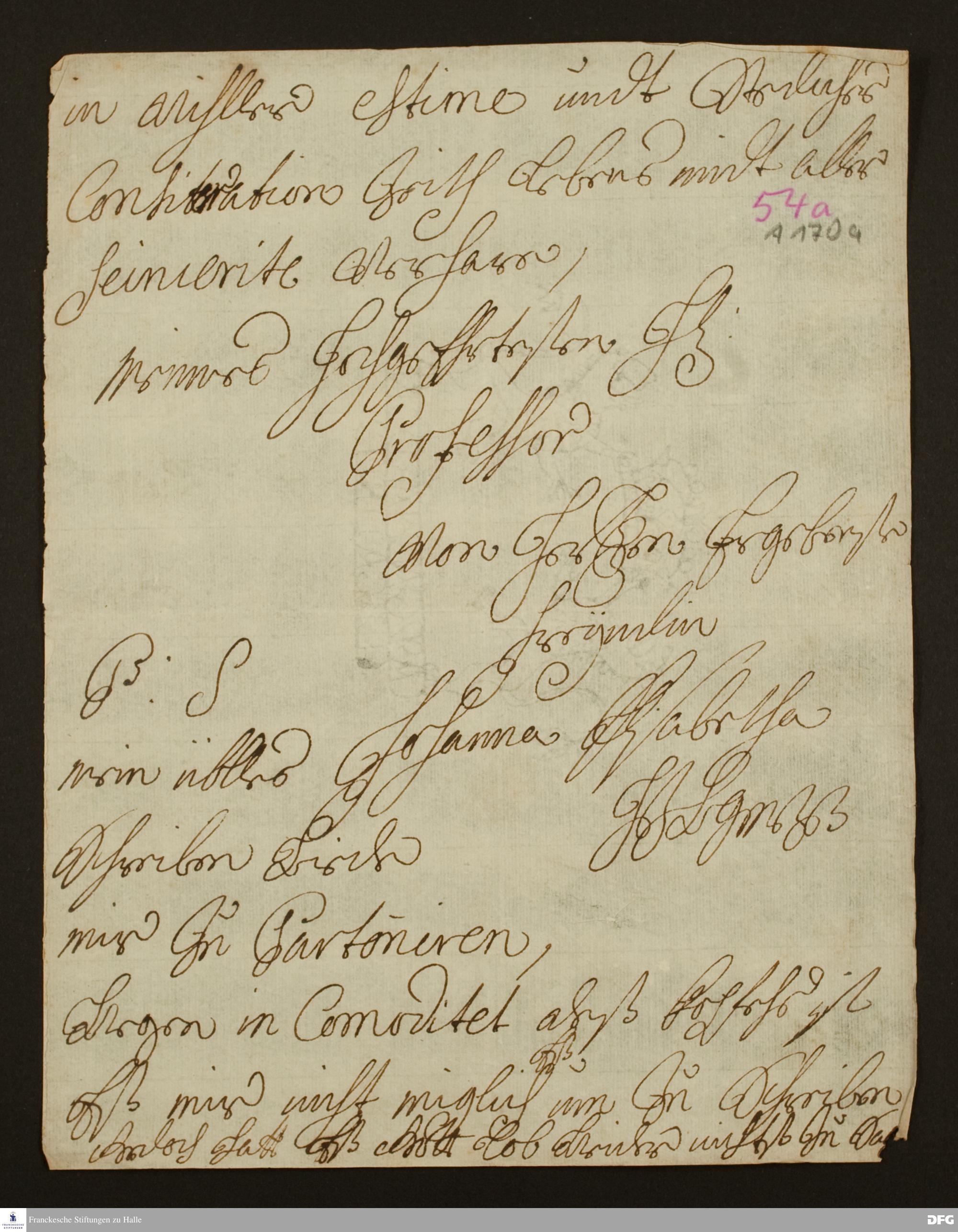Brief von Johanna Elisabeth v. Württemberg an August Hermann Francke.