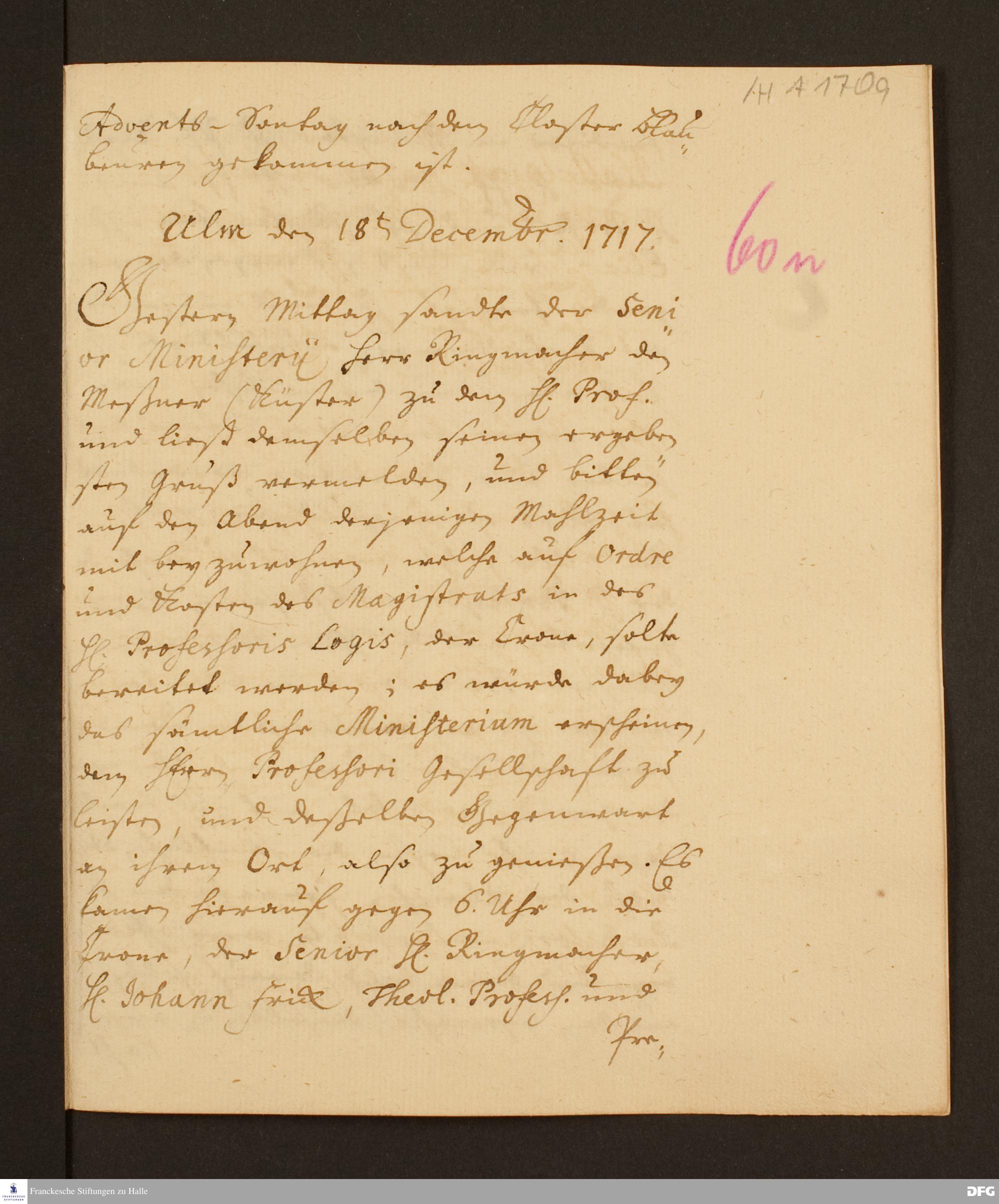 Reiseberichte von Georg Heinrich Neubauer. Dezember 1717 18. Dezember 1717