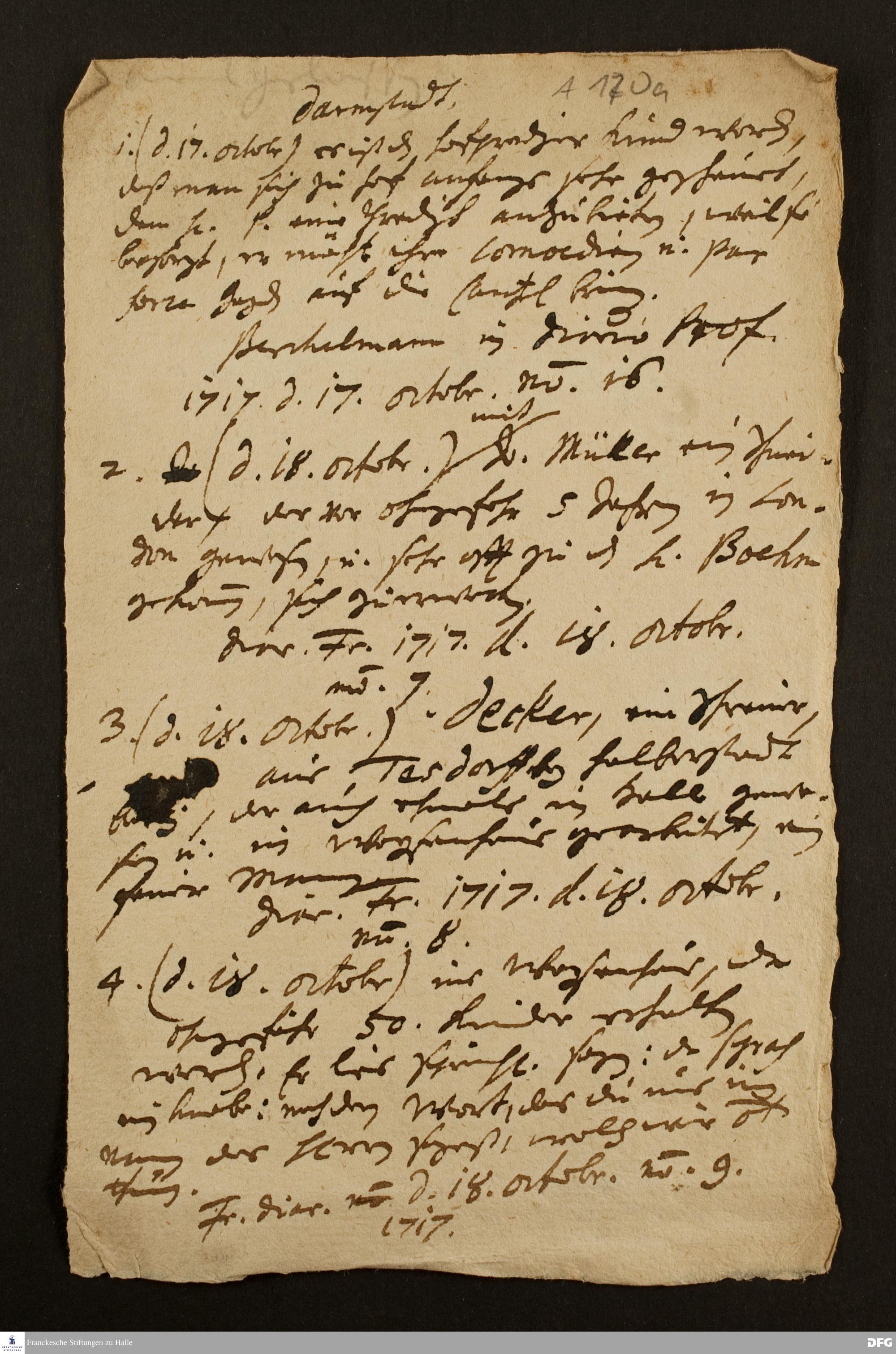 Abschriften aus Berichten und Tagebüchern über August Hermann Franckes Reise nach Süddeutschland.