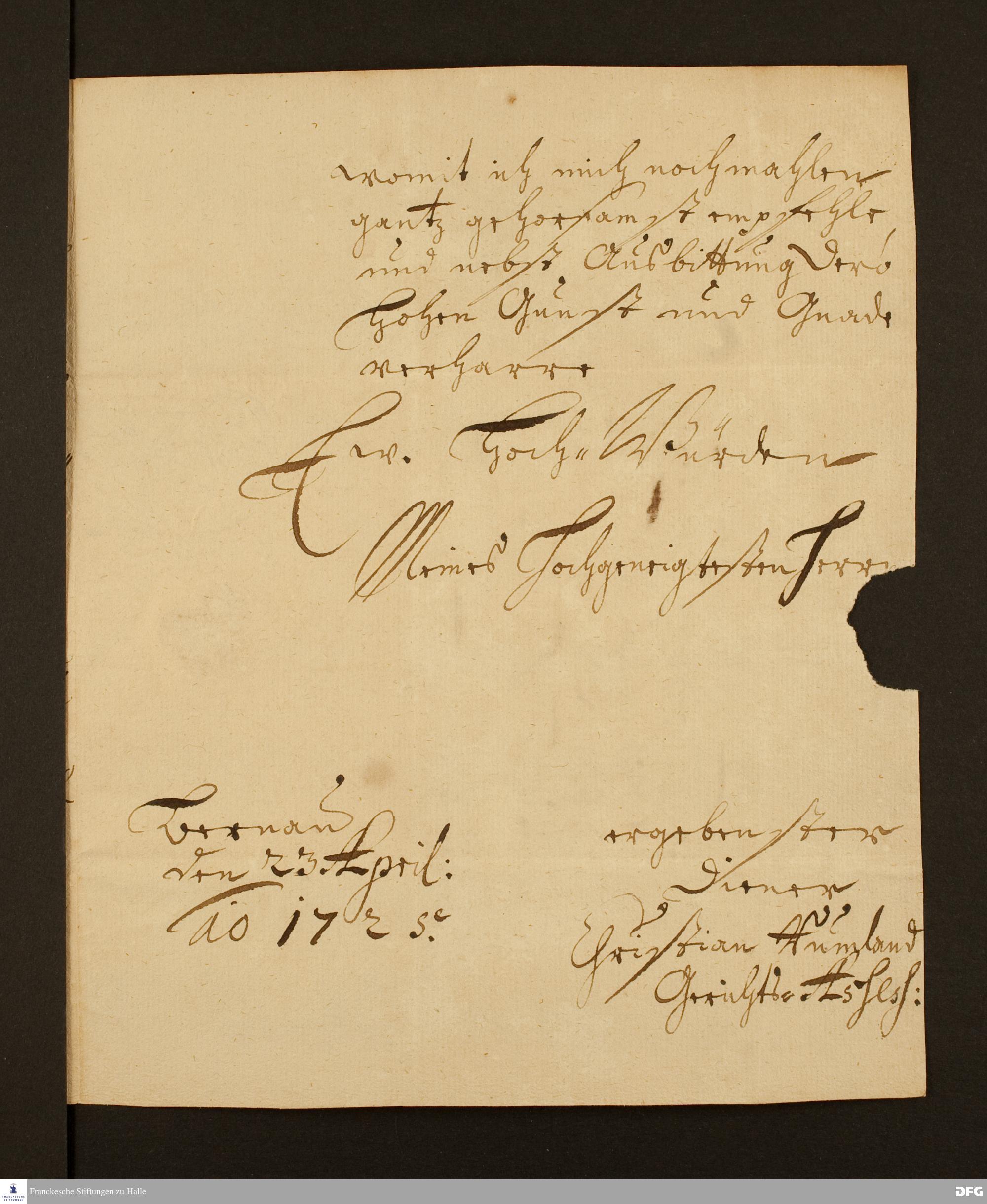 Brief von Christian Rumland an August Hermann Francke.