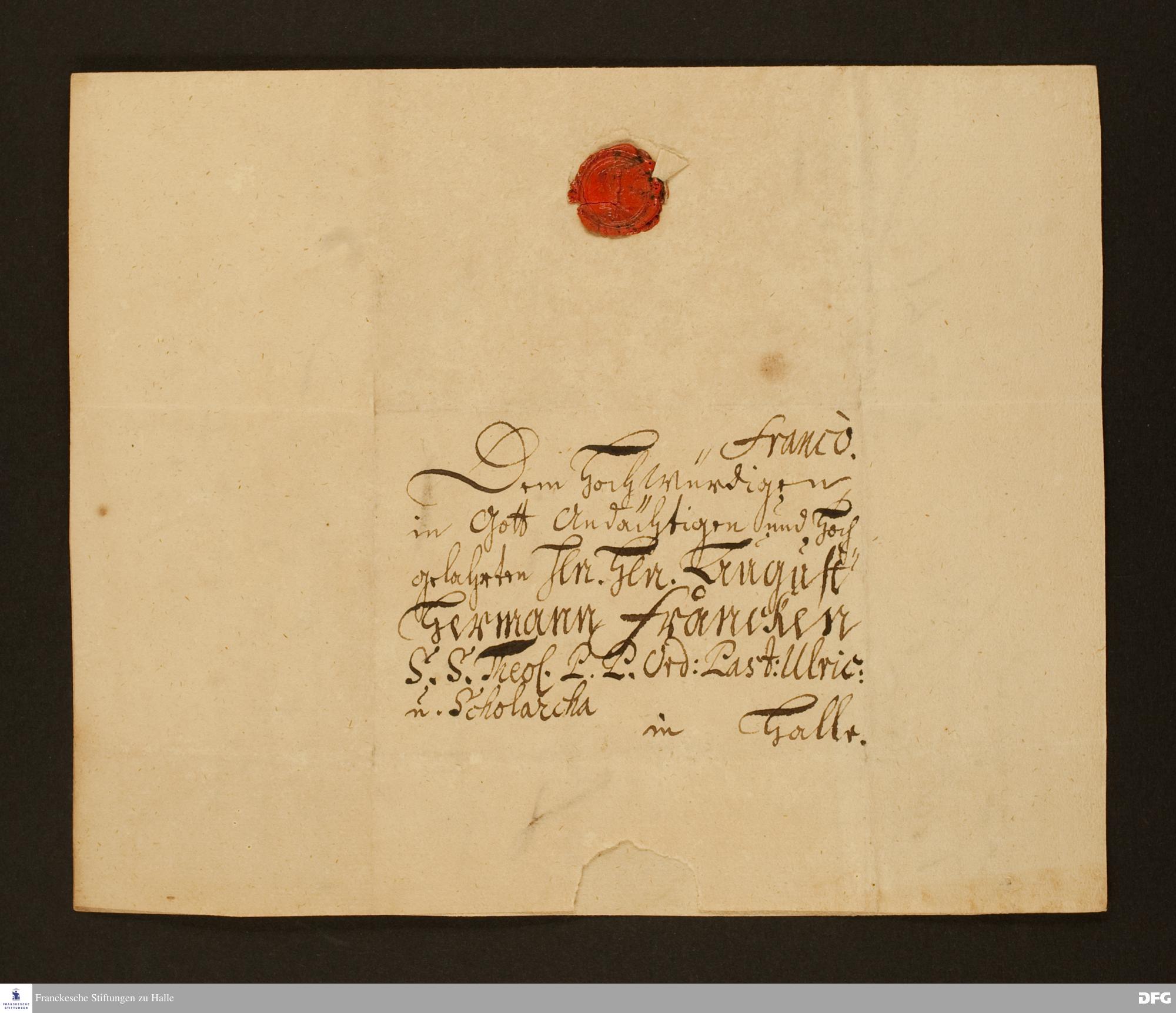 Brief von Christian Rumland an August Hermann Francke.