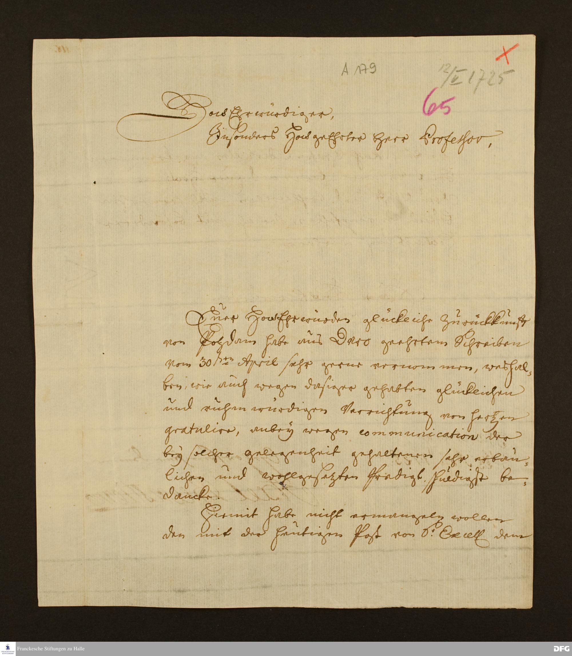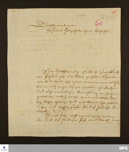 Brief von Axel Reenstierna an August Hermann Francke.