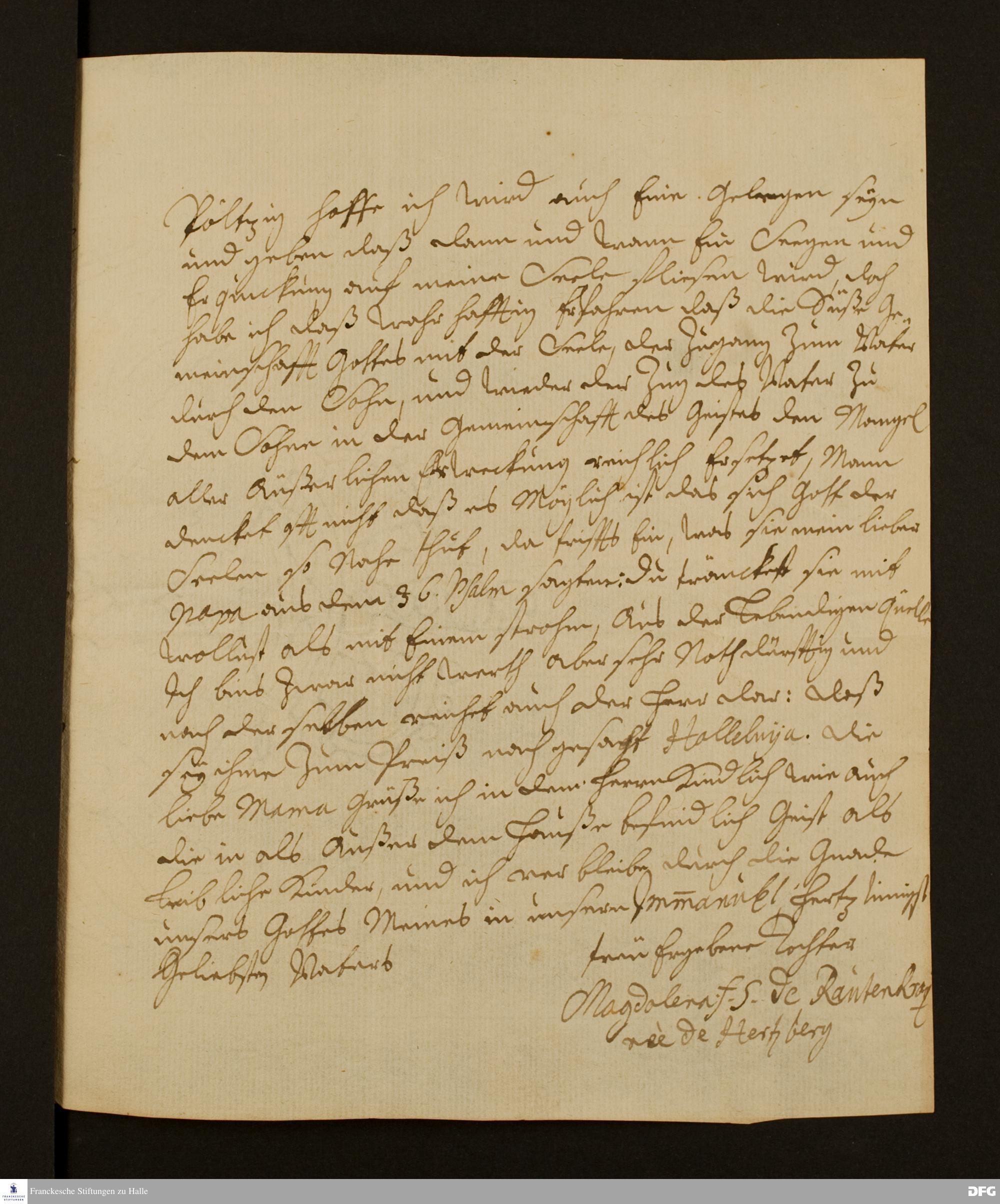 Brief von Magdalena Franziska Sibylle von Rautenkranz an August Hermann Francke.