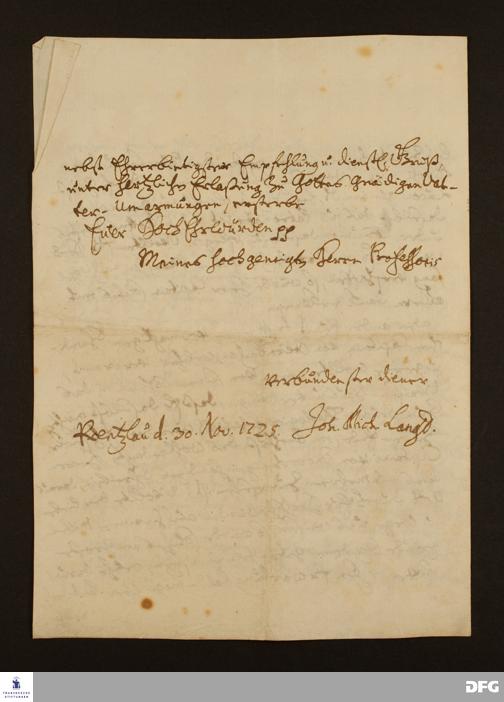 Brief von Johann Michael Lange an August Hermann Francke.