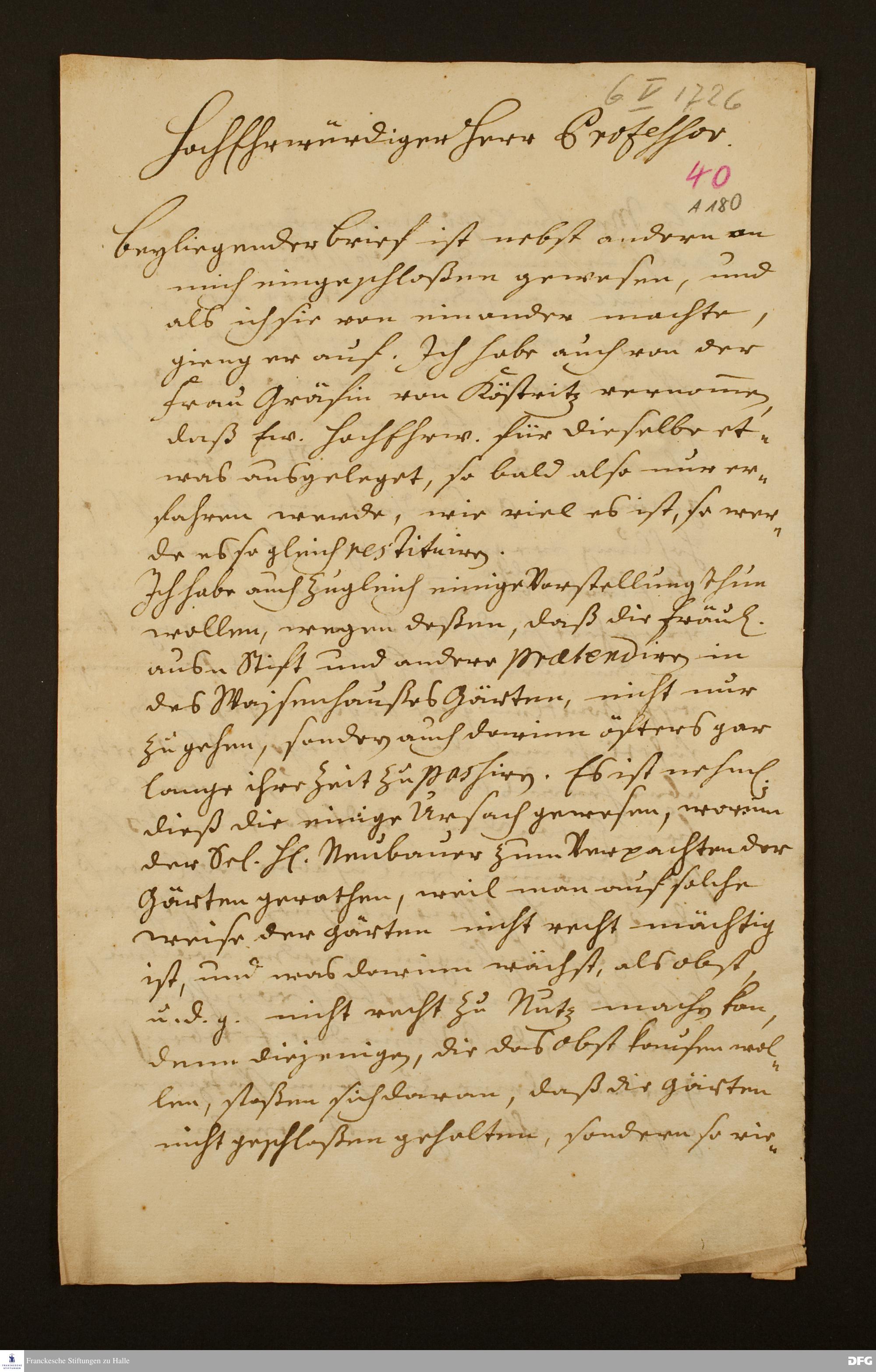 Brief von Heinrich Tobias Vogel an August Hermann Francke.