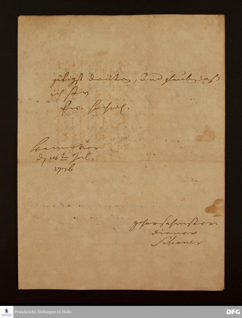 Brief von Ernst Schener an [August Hermann Francke ?].