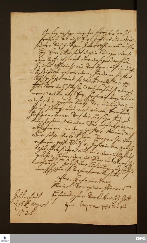 Brief von Jakob Schlepegrell an August Hermann Francke.