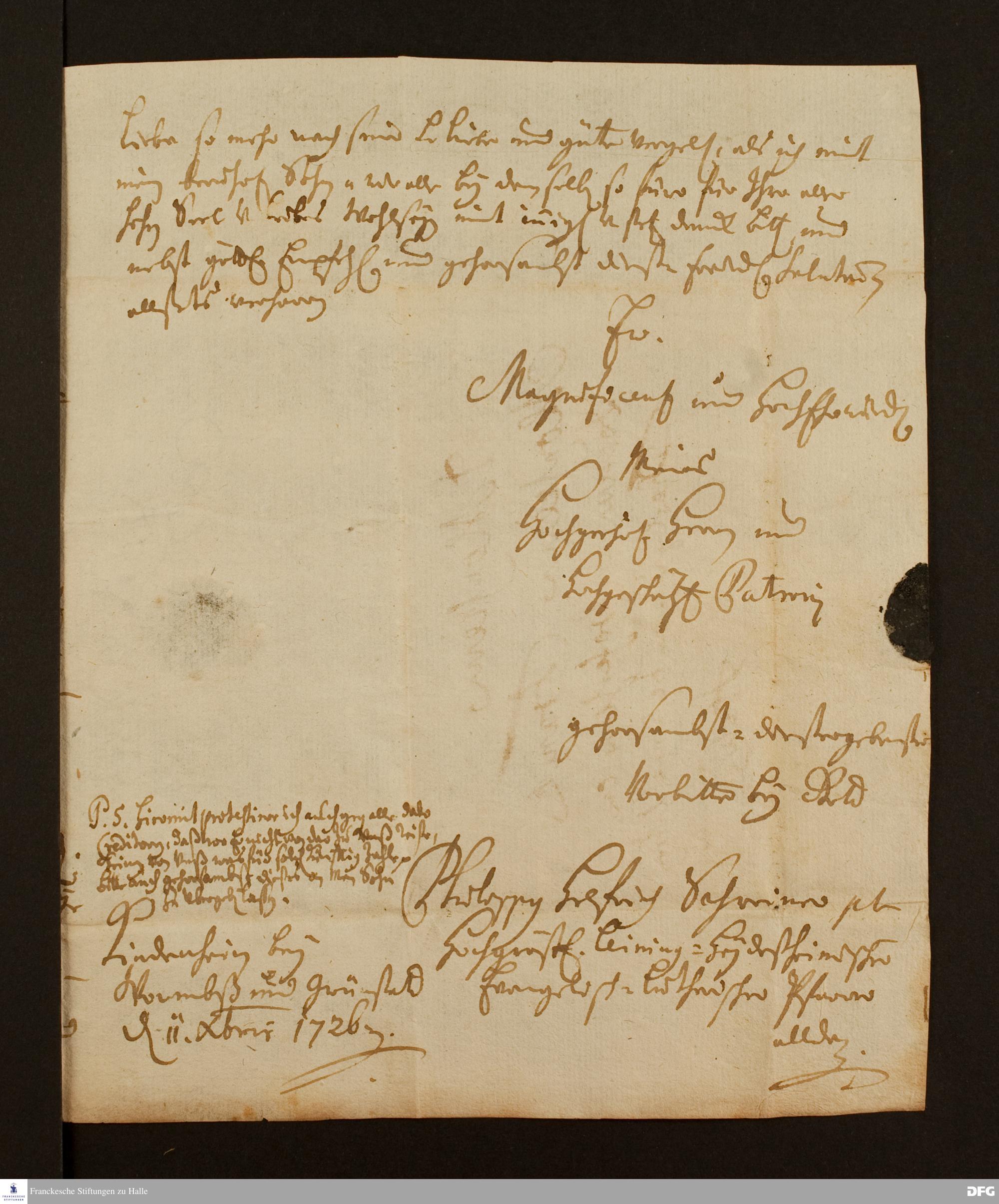 Brief von Philipp Helfrich Schreiner an August Hermann Francke.