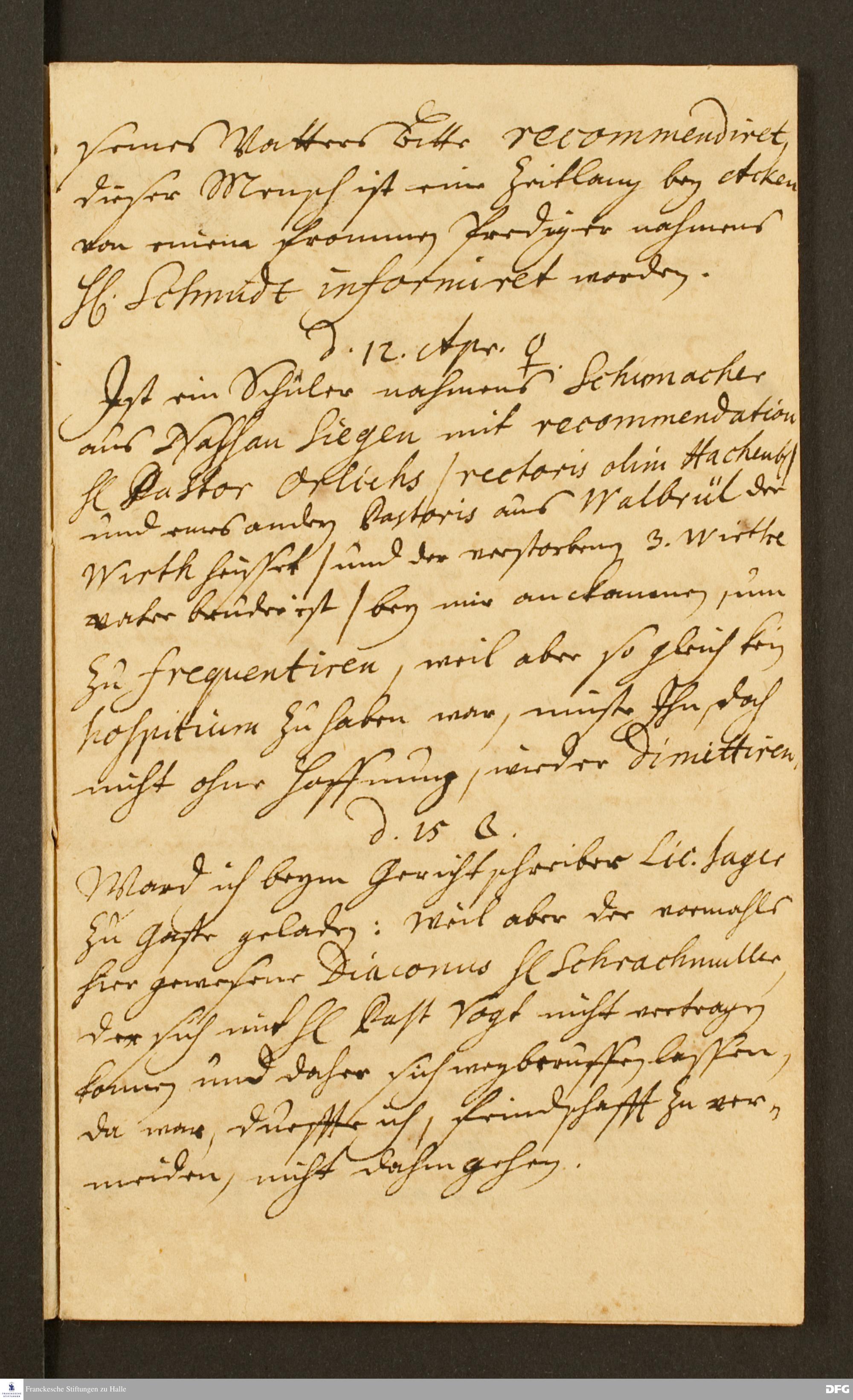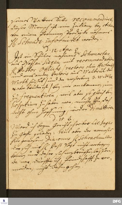 Reisetagebuch von Daniel Christian Francke an August Hermann Francke.